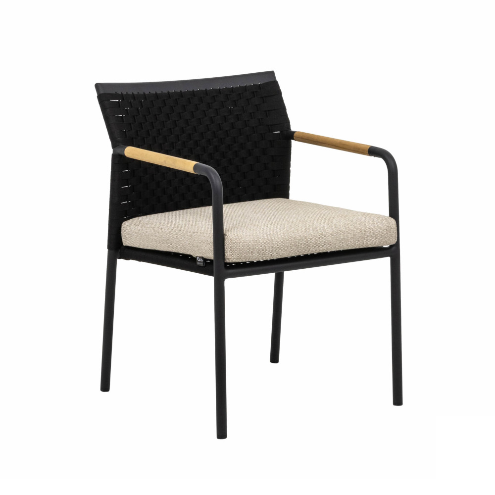 Elle Garden Chair is a sturdy and modern garden chair. The black accents create a sleek design, while the rounded shapes and warmth of teak wood make the chair contemporary and in line with current trends. The ongoing trend combines sleek and extremely comfortable seating. Combined with the Condor garden table, these chairs create a perfect set for long evenings in a cozy terrace atmosphere.
