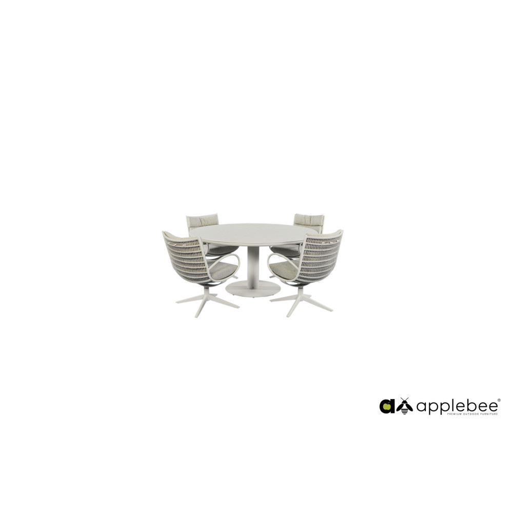 The Melville table by AppleBee is a modern and elegant dining table that is ideal for outdoor environments. The tabletop is made of artificial stone, a material known for its durability and resistance to weather conditions. The base of the table is made of powder-coated aluminium, providing a sturdy and lightweight foundation.