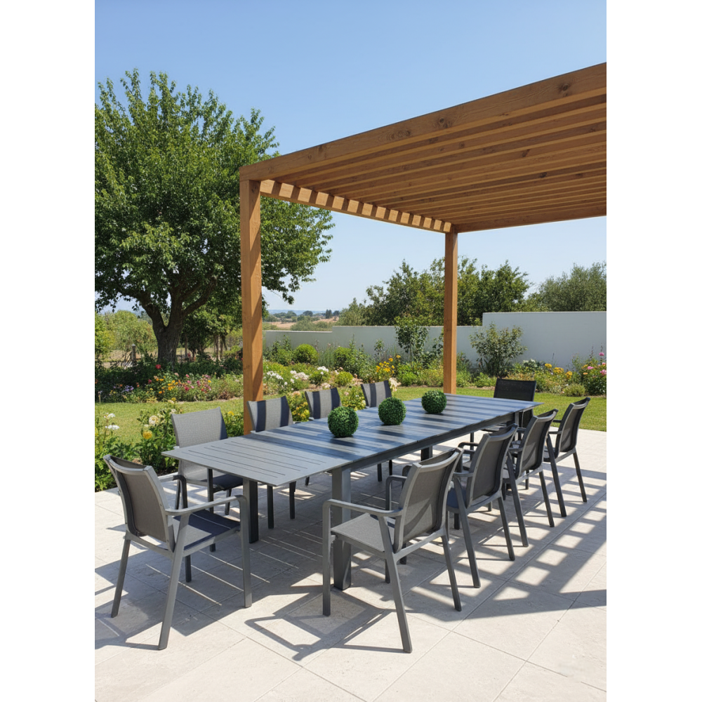 Ceramic tabletop: finished in an elegant anthracite color, giving the table a stylish and practical look. The ceramic surface is resistant to scratches, high temperatures, and UV radiation, ensuring long service life and easy maintenance.