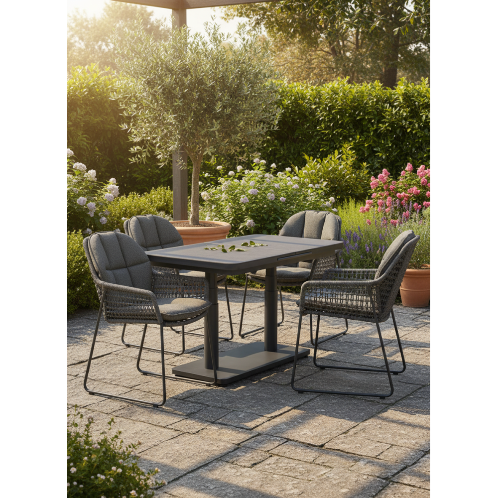 The SKANDI table consists of a welded aluminum frame and high-quality outdoor ceramic material. Thanks to modern mechanisms, the table impresses with its functionality and versatility.