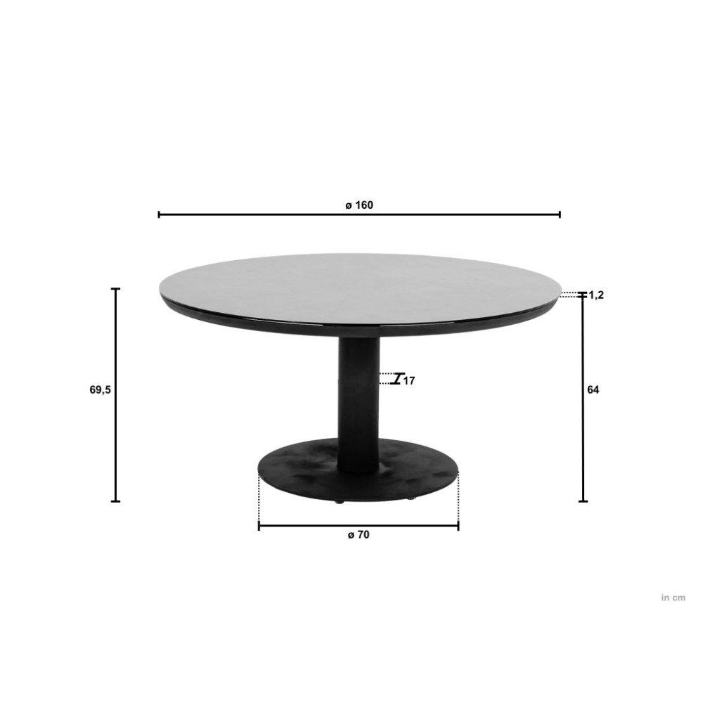 With a diameter of 140 cm and a height of 77 cm, the table offers enough space for a cosy dinner with family or friends.