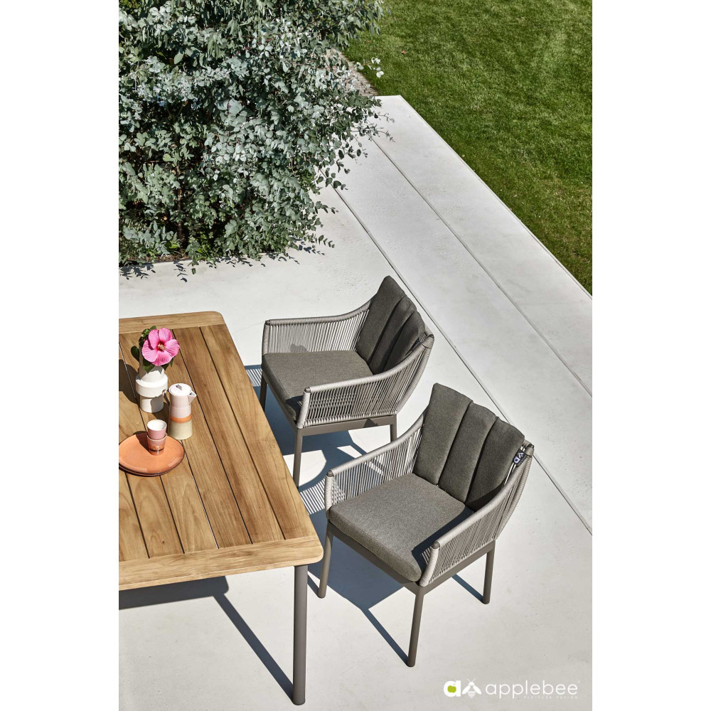The elegant Apple Bee Bijou dining table is made of an aluminium frame and a warm-coloured and textured tabletop. The table is a perfect match for chairs from the Bijou series. The Apple Bee Bijou outdoor furniture collection is an exquisite combination of style and functionality, designed to provide comfort and aesthetics in the open air.