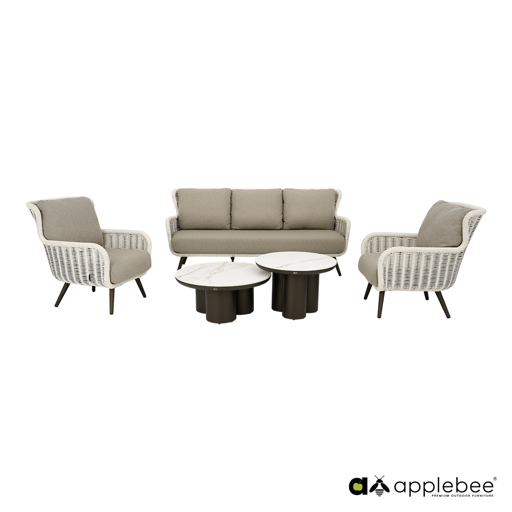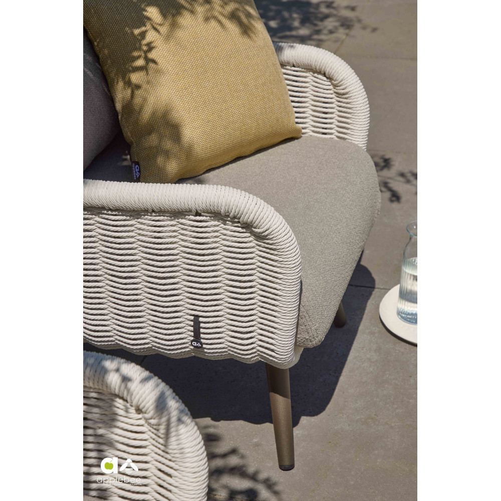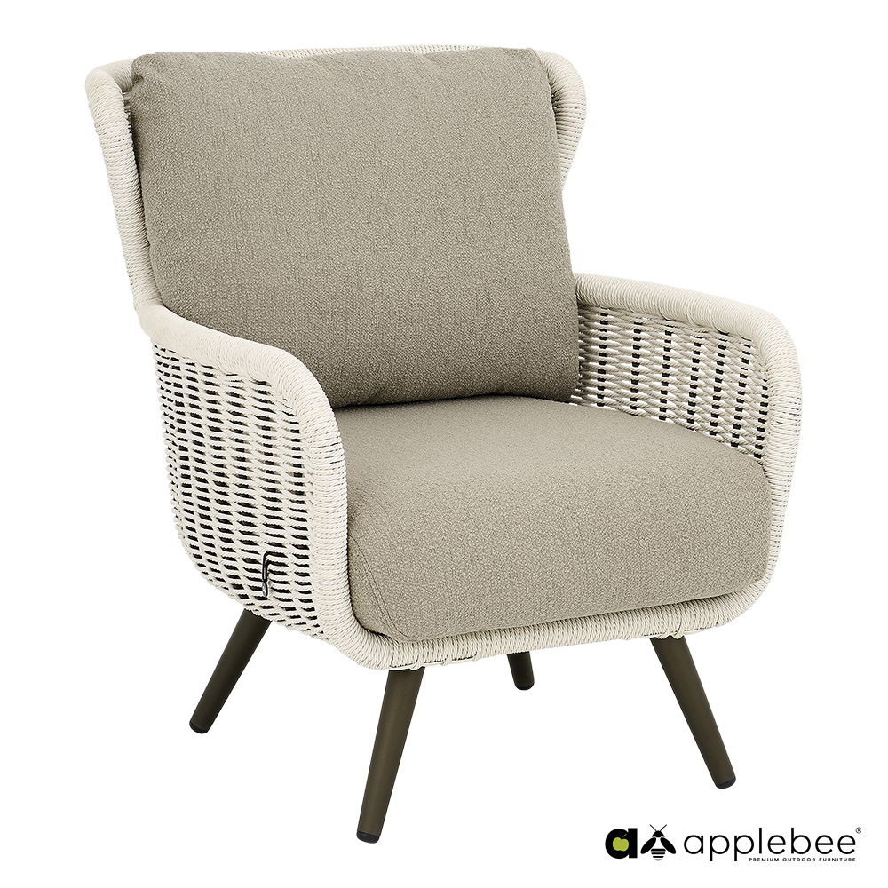 The Biculair® Twisted Ivory weaving is a high-quality synthetic material developed by Apple Bee as a durable alternative to natural rattan. Its twisted structure adds depth and a subtle three-dimensional texture, creating a soft yet dynamic visual rhythm. The material is UV-resistant, does not absorb moisture, and maintains its shape and color over many seasons.