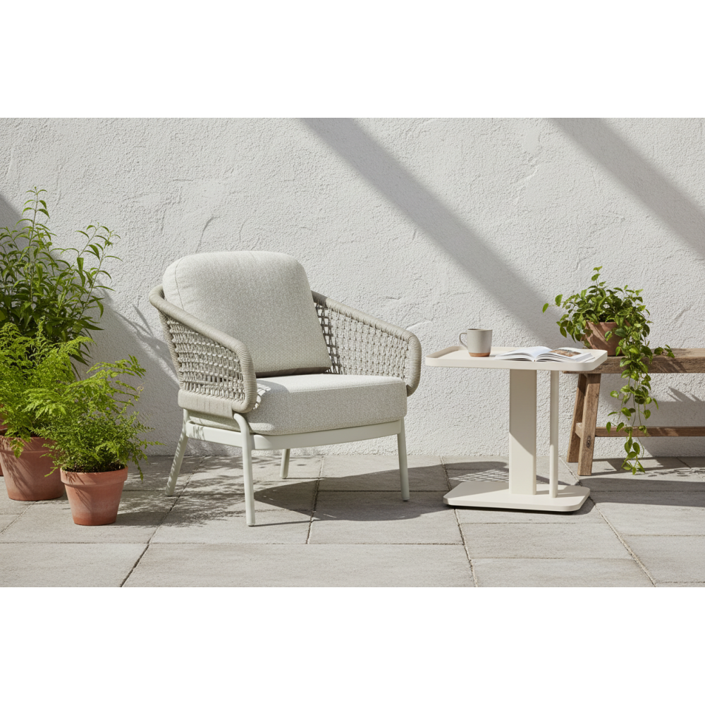 Acrylic rope: the backrest and seat are crafted from UV-resistant ropes that do not fade in sunlight, ensuring long-term color durability and visual appeal.