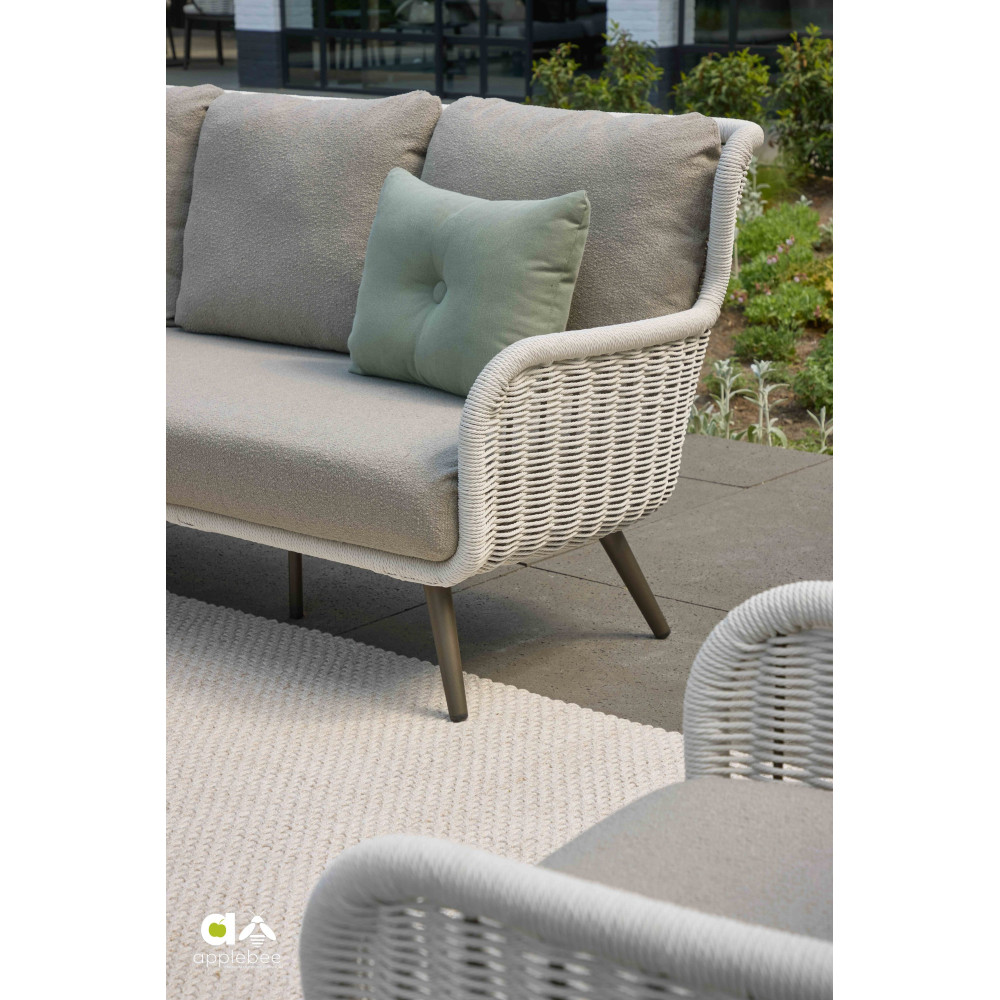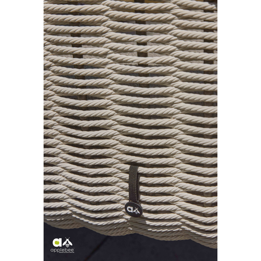 The Biculair® Twisted Ivory weaving is a high-quality synthetic material developed by Apple Bee as a durable alternative to natural rattan. Its twisted structure adds depth and a subtle three-dimensional texture, creating a soft yet dynamic visual rhythm. The material is UV-resistant, does not absorb moisture, and maintains its shape and color over many seasons.