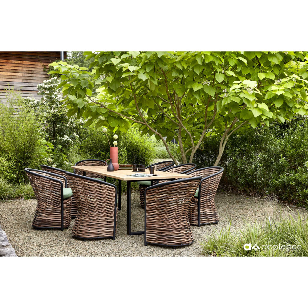 The 20 mm thick cord is tightly and neatly wrapped around the aluminium frame. Apple Bee has mastered this complex weaving technique thanks to many years of experience and collaboration with the most skilled weaving experts. The designer aims to convey the idea of woven rattan sticks using a new woven thread. The braided sisal rope not only gives Cocoon a unique character but also makes the furniture easy to move. Cocoon is, in both the literal and figurative sense, an evergreen plant of Apple Bee!
