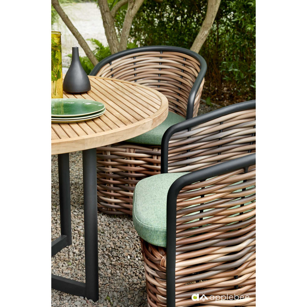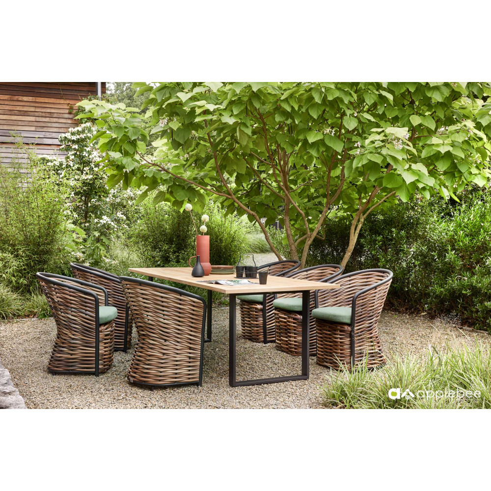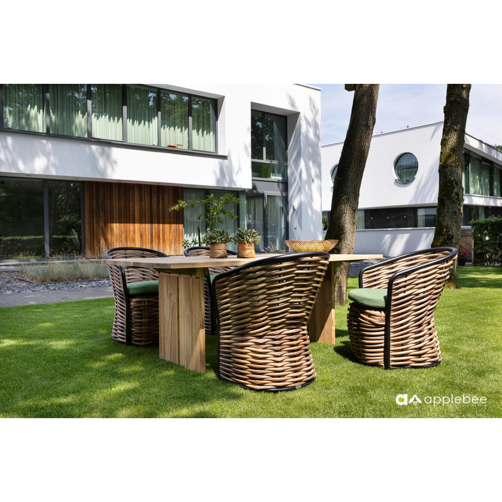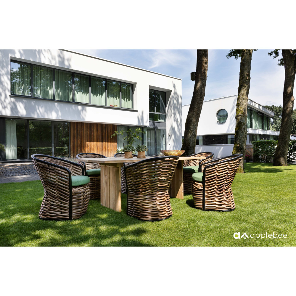 A return after a long absence! It is no surprise that Cocoon has been reintroduced into the Apple Bee collection, this time in a very contemporary look. Beautiful green lounge cushions featuring Bee Wett® technology with thick woven Biculair® yarn up to 20 mm. Your own safe haven in the garden or on the terrace.
