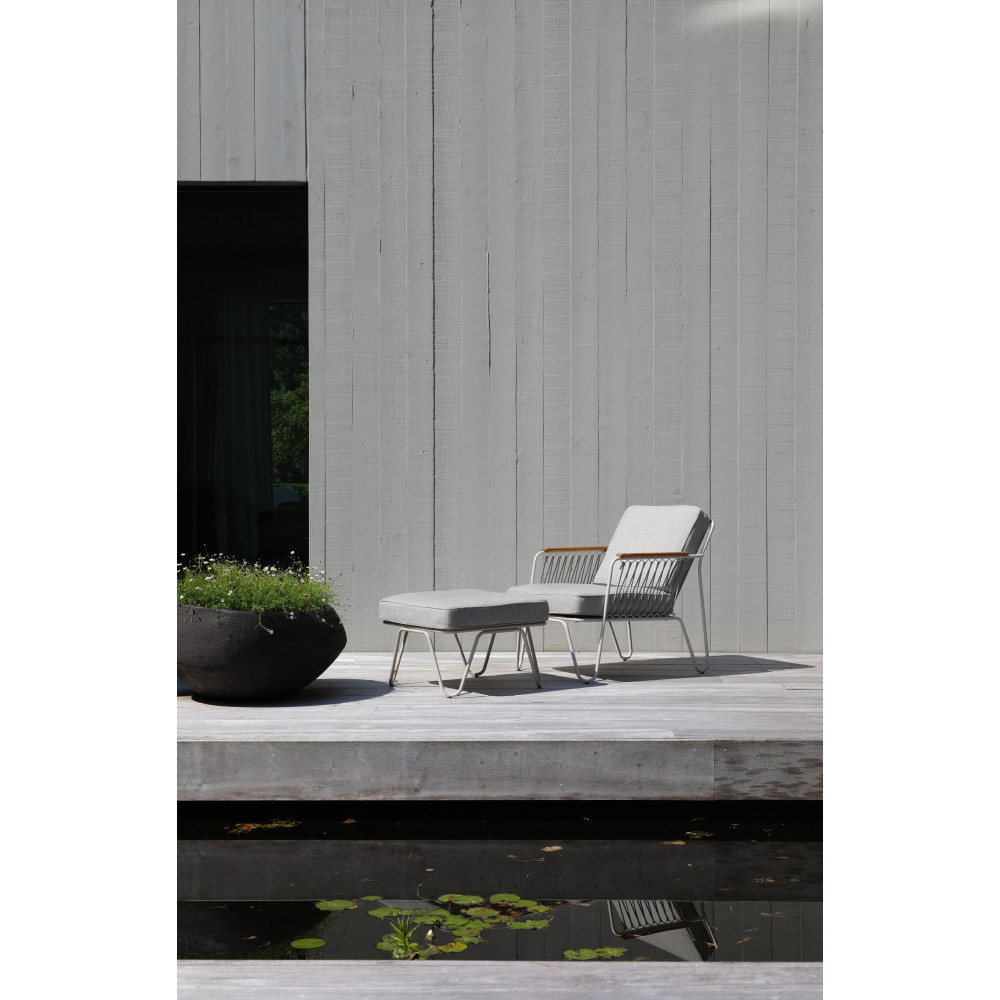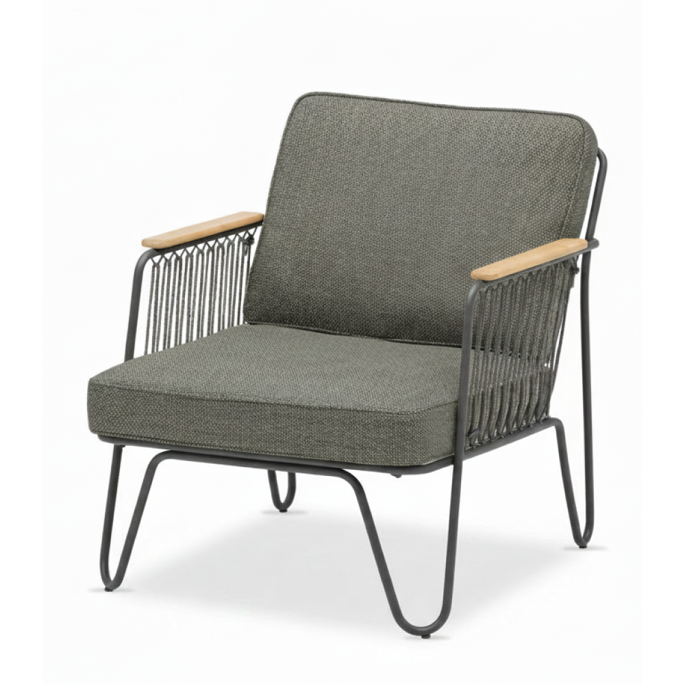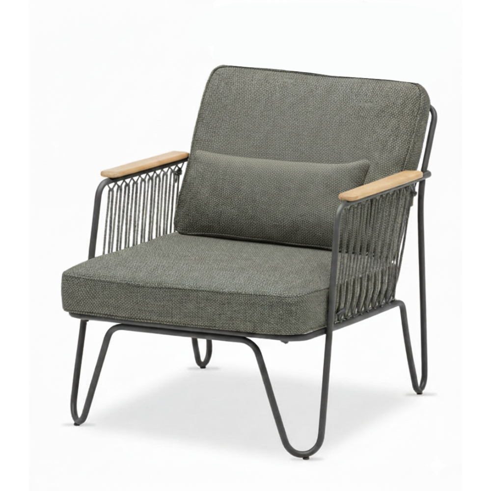 Details: Armrests made of natural teak wood add elegance and warmth, highlighting the natural character of the collection.