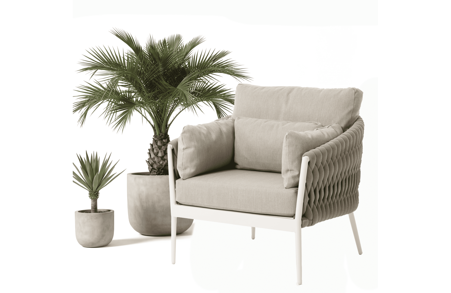 Armchairs from this collection feature a perfect fit and a combination of rope weaving, aluminium, and soft cushions, making them extremely comfortable, wear-resistant, and highly stylish. The collection includes a lounge set and a modular corner set, allowing you to create the perfect arrangement for your terrace.