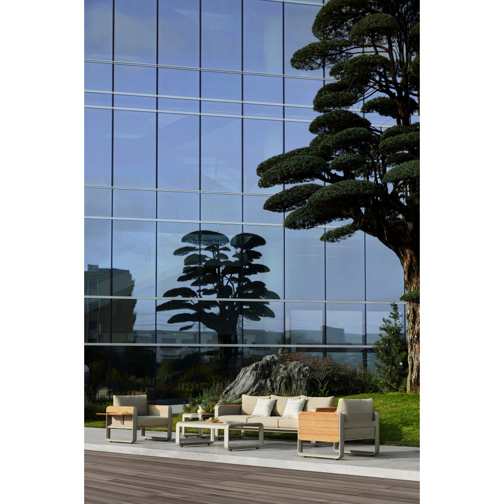 Thanks to thoughtful design and the use of high-quality materials, NOTTINGHAM creates a stylish and comfortable space for relaxing on a terrace, in the garden, or in an outdoor lounge area. The combination of a metal frame with teak wood elements gives the furniture strength, durability, and an elegant appearance.