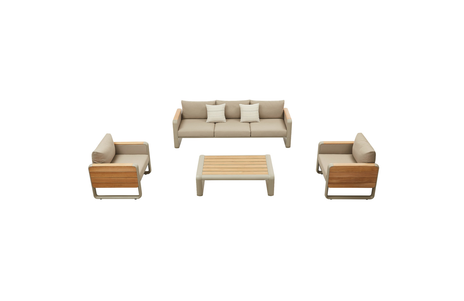 NOTTINGHAM outdoor furniture collection elegantly combines industrial precision and natural warmth, showcasing a harmonious union of metal and teak wood. Clean geometric lines emphasize modern aesthetics, while teak panels add natural texture and organic appeal, highlighting the timeless beauty of natural materials.