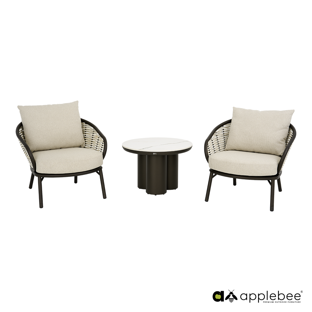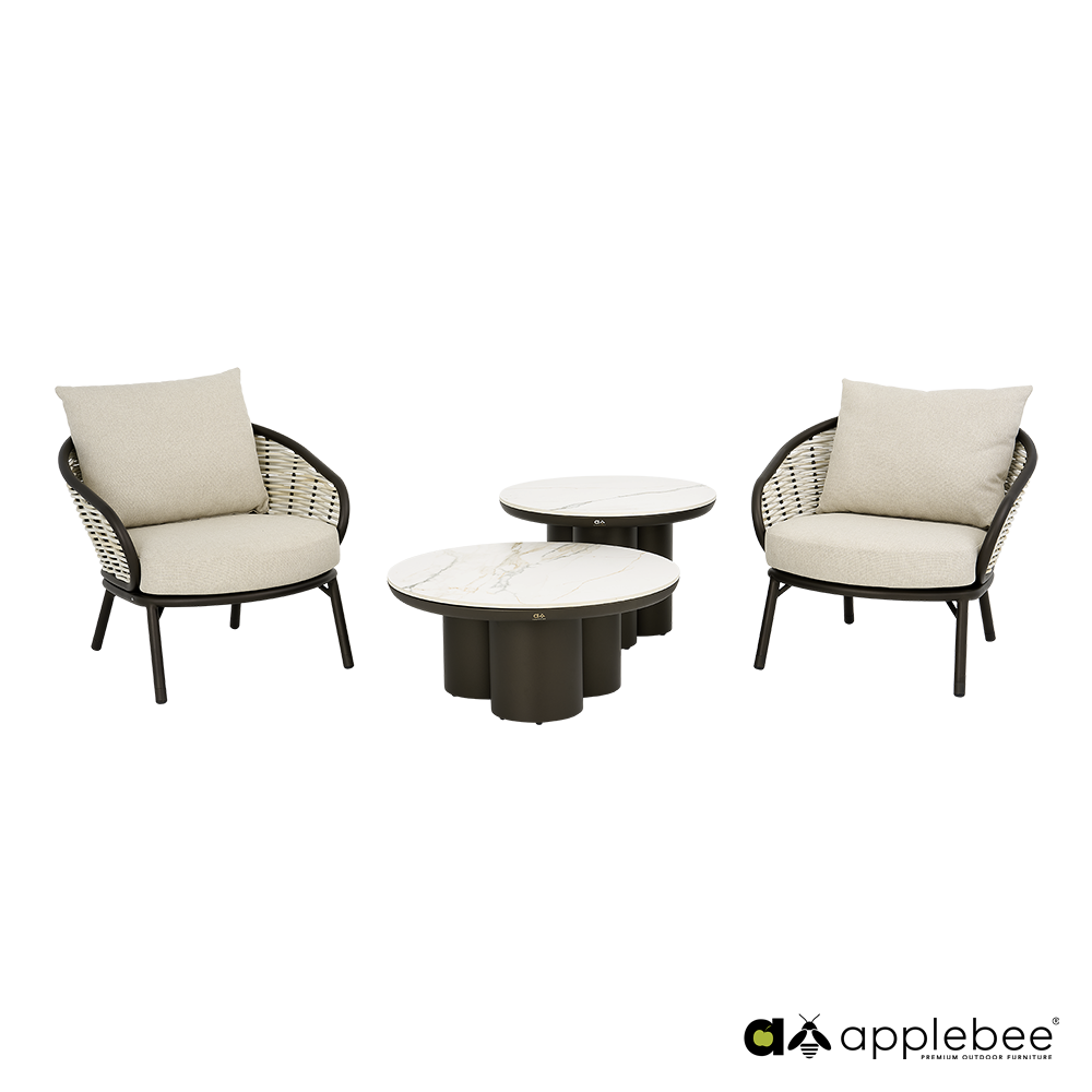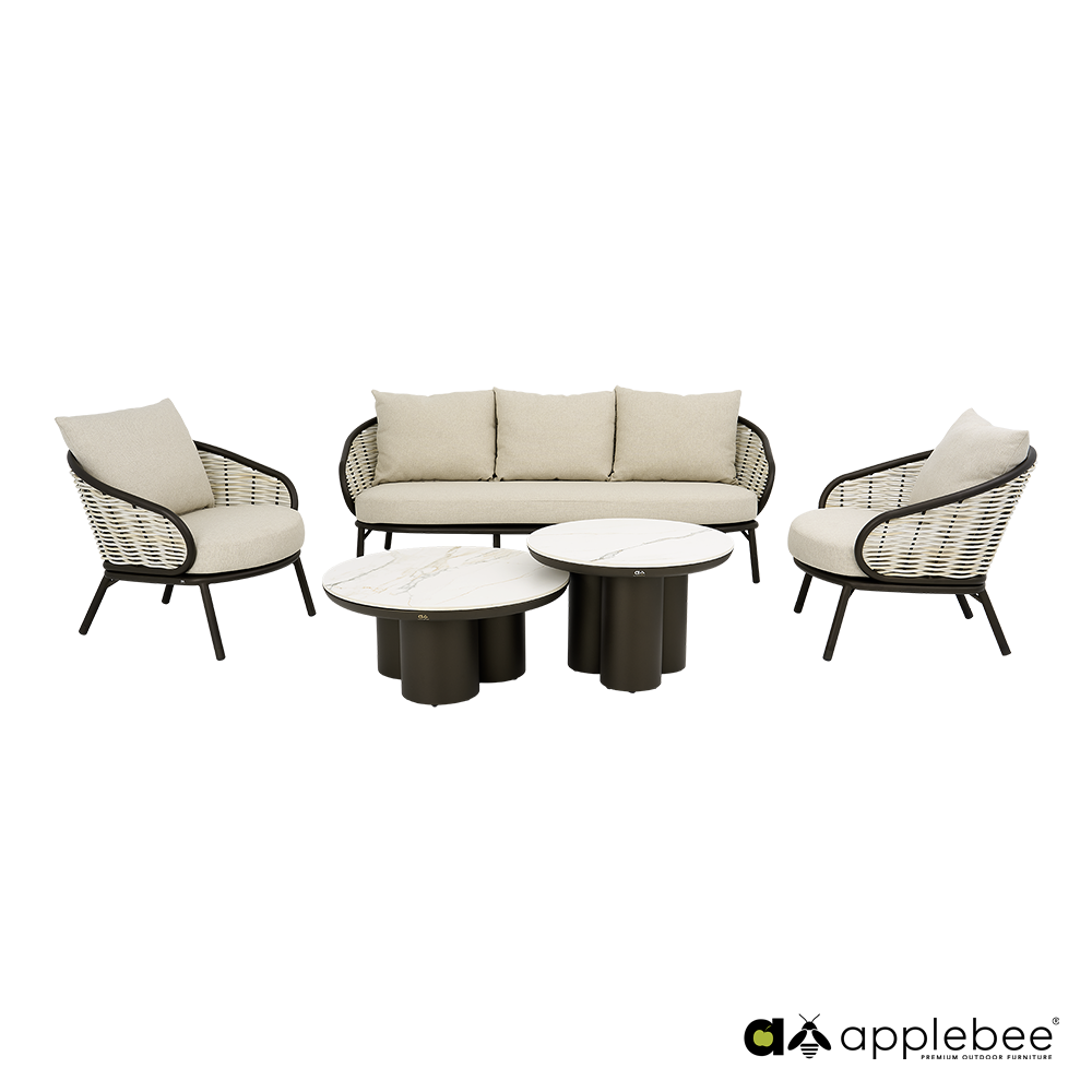 Bring the atmosphere of an exclusive resort to your garden with the Pine Key Lounge Bronze set. This set is eye-catching, combining modern design with a warm, natural look. The set is based on a sophisticated powder-coated aluminum frame in a unique bronze color. This not only provides an elegant matte finish, but also guarantees a long service life. The frame is beautifully complemented by sturdy woven fabric in a delicate Oyster shade.