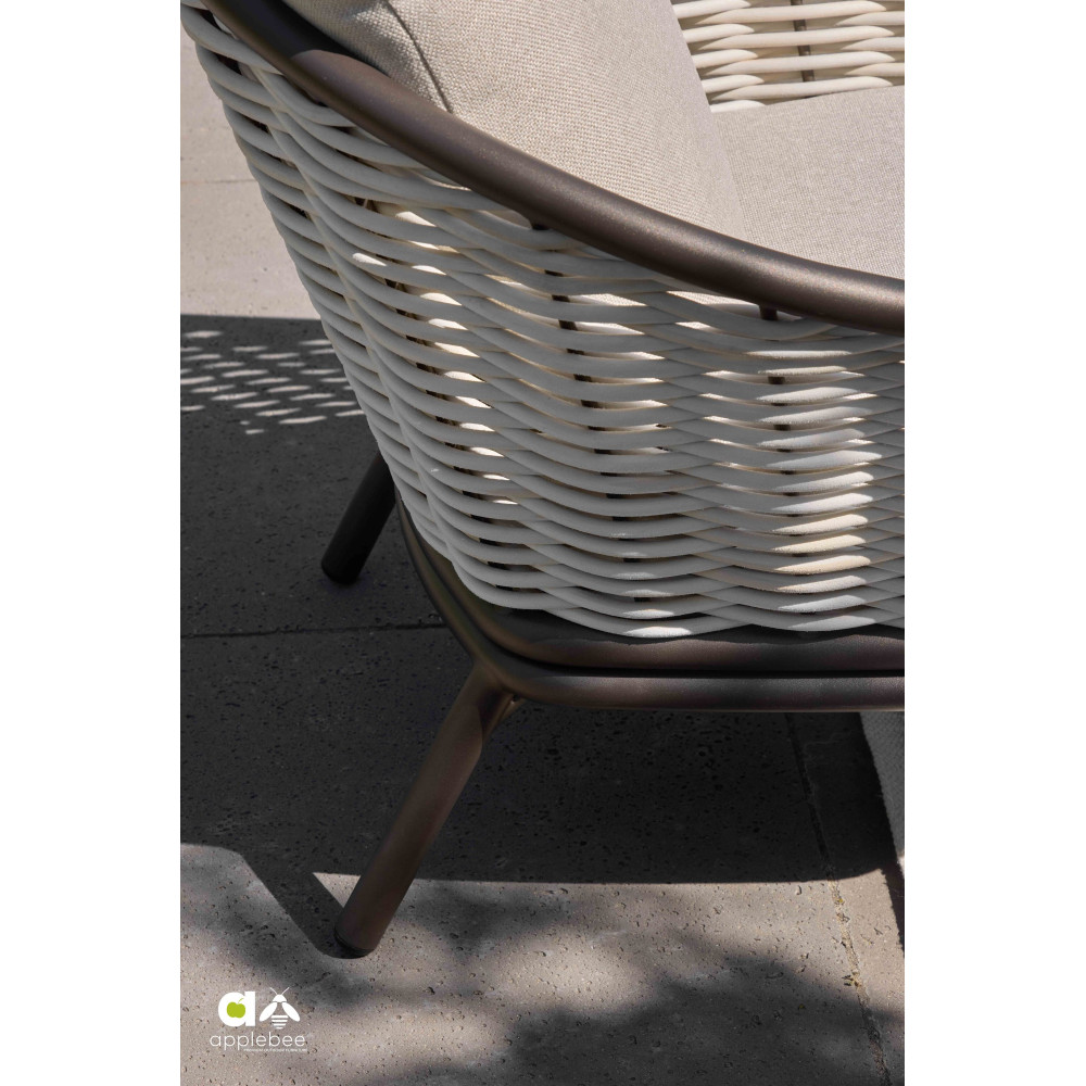 - BEE WETT cushions: Comfortable BEE WETT cushions offer high moisture resistance and quick drying, maintaining comfort and attractive appearance even in adverse weather conditions. The removable cover is washable at a maximum temperature of 30°C. The open weave at the bottom of the cushion ensures perfect drainage. The fabric structure is resistant to mold and mildew, does not fade in the sun, repels water, and is soft and pleasant to the touch.