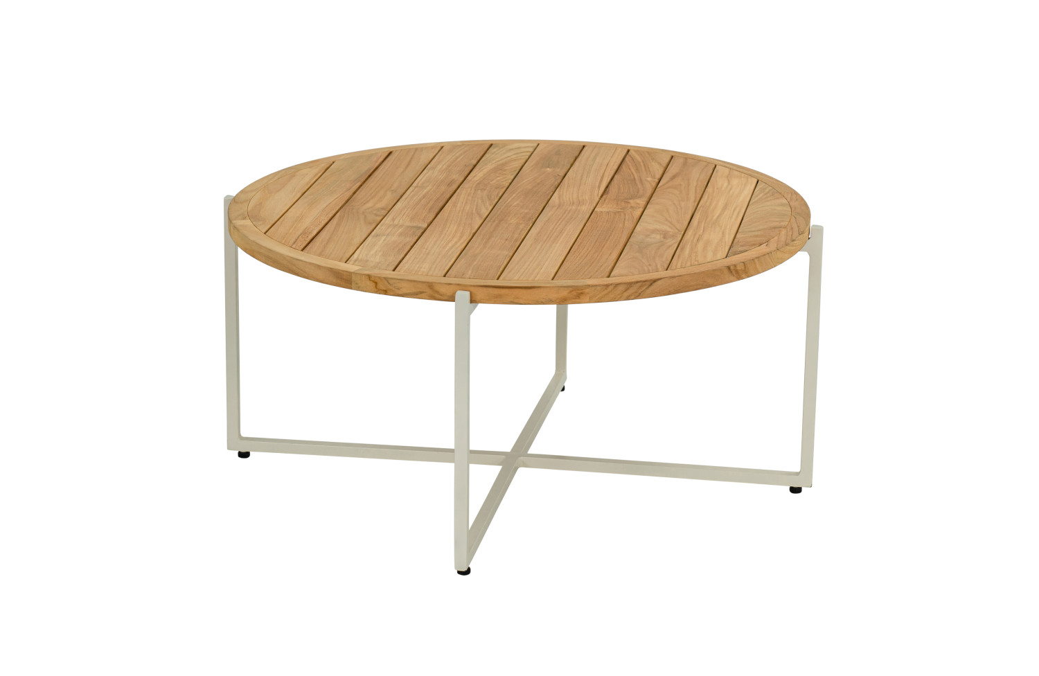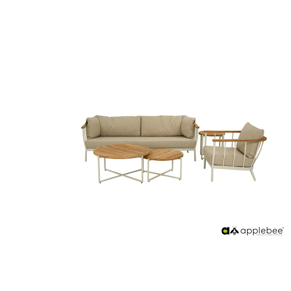 The Condor coffee table from Apple Bee is fully in line with Apple Bee's new styles, featuring an aluminium frame in OYSTER (TAUPE) and a teak tabletop.