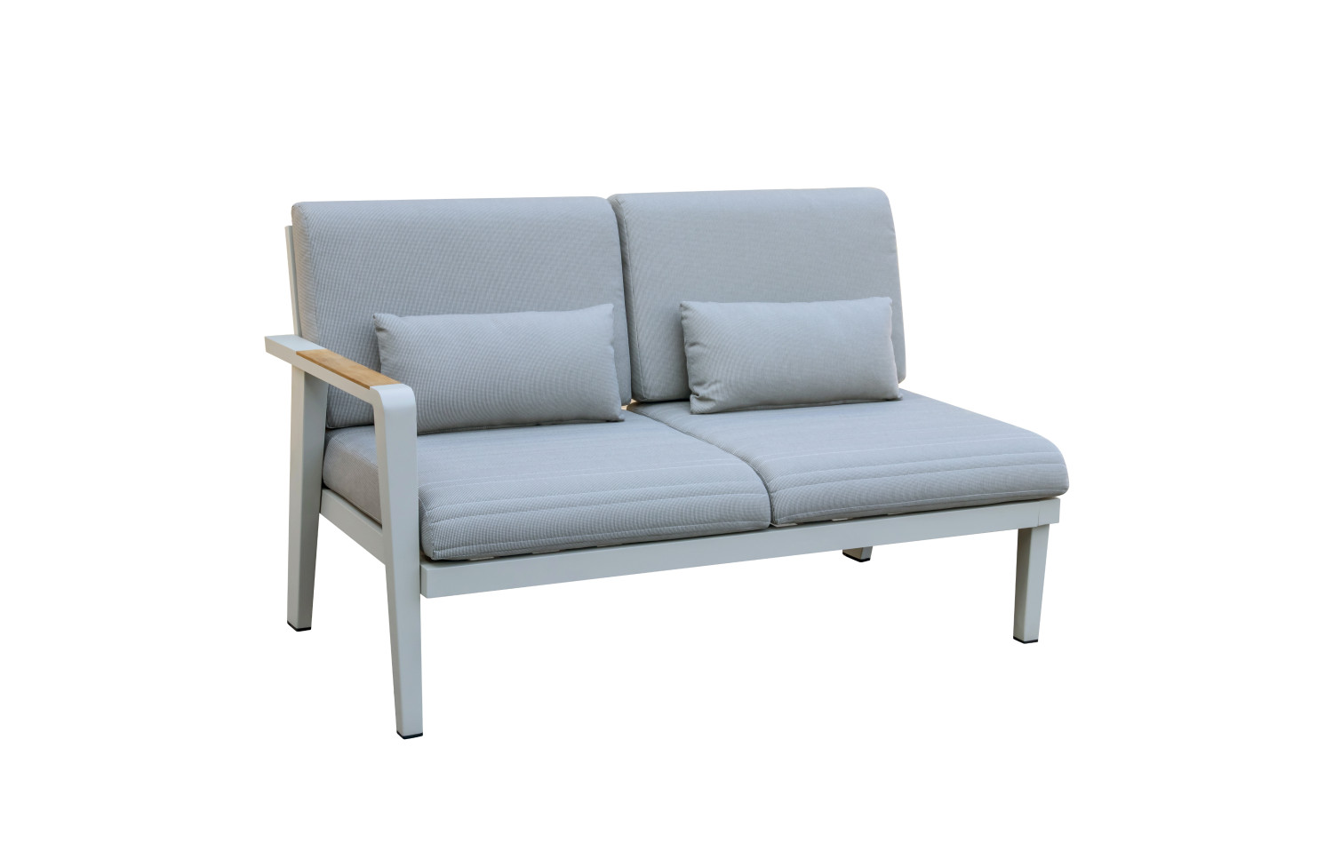A two-seater sofa that can be used to create a corner sofa. The Emoti series is made of high-quality aluminium and offers endless possibilities for creating and combining relaxation areas. Effortlessly create a comfortable sofa group or a pleasant dining area just the way you want it. Dining tables come in various shapes and sizes, which, combined with comfortable chairs, allow you to create a cosy atmosphere. A side table provides additional space for storing items. The main body is rigid, but with soft Olefin fabric cushions, it is much softer.