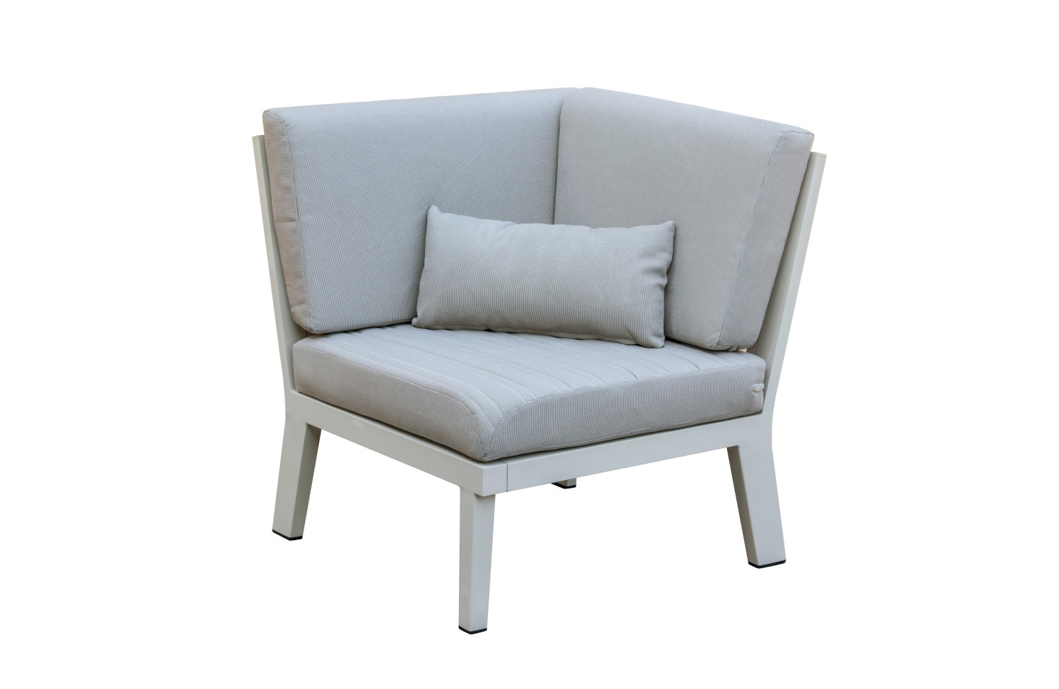 A corner element that can be used to create a corner sofa. The Emoti series is made of high-quality aluminium and offers endless possibilities for creating and combining relaxation areas. Effortlessly create a comfortable sofa group or a pleasant dining area just the way you want it. Dining tables come in various shapes and sizes, which, combined with comfortable chairs, allow you to create a cosy atmosphere. A side table provides additional space for storing items. The main body is rigid, but with soft Olefin fabric cushions, it is much softer.