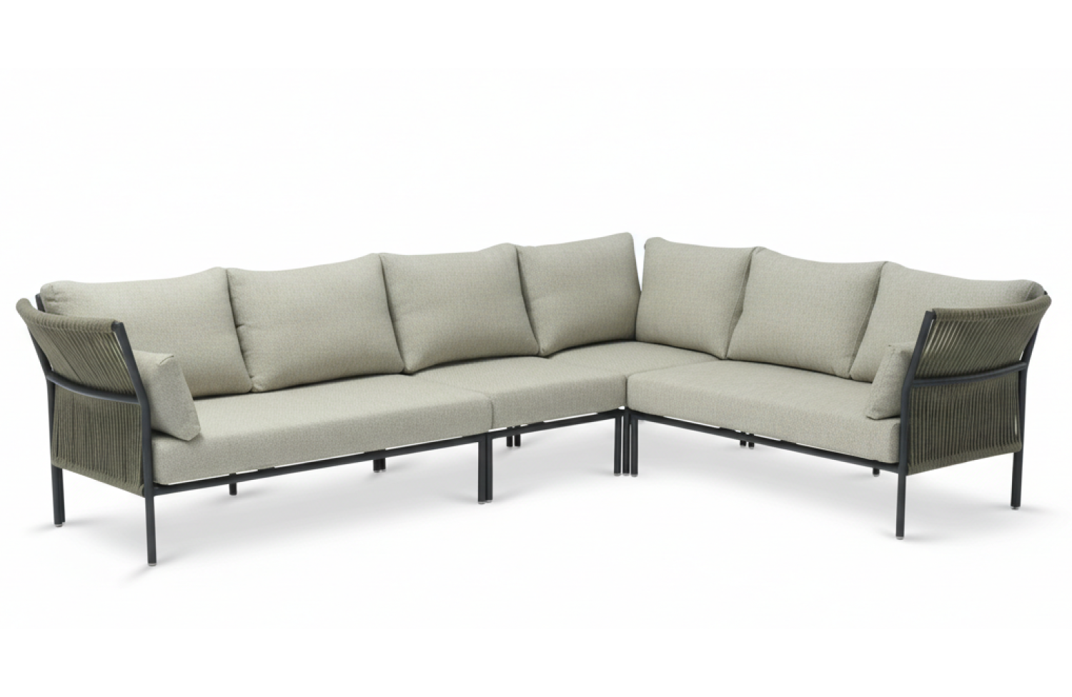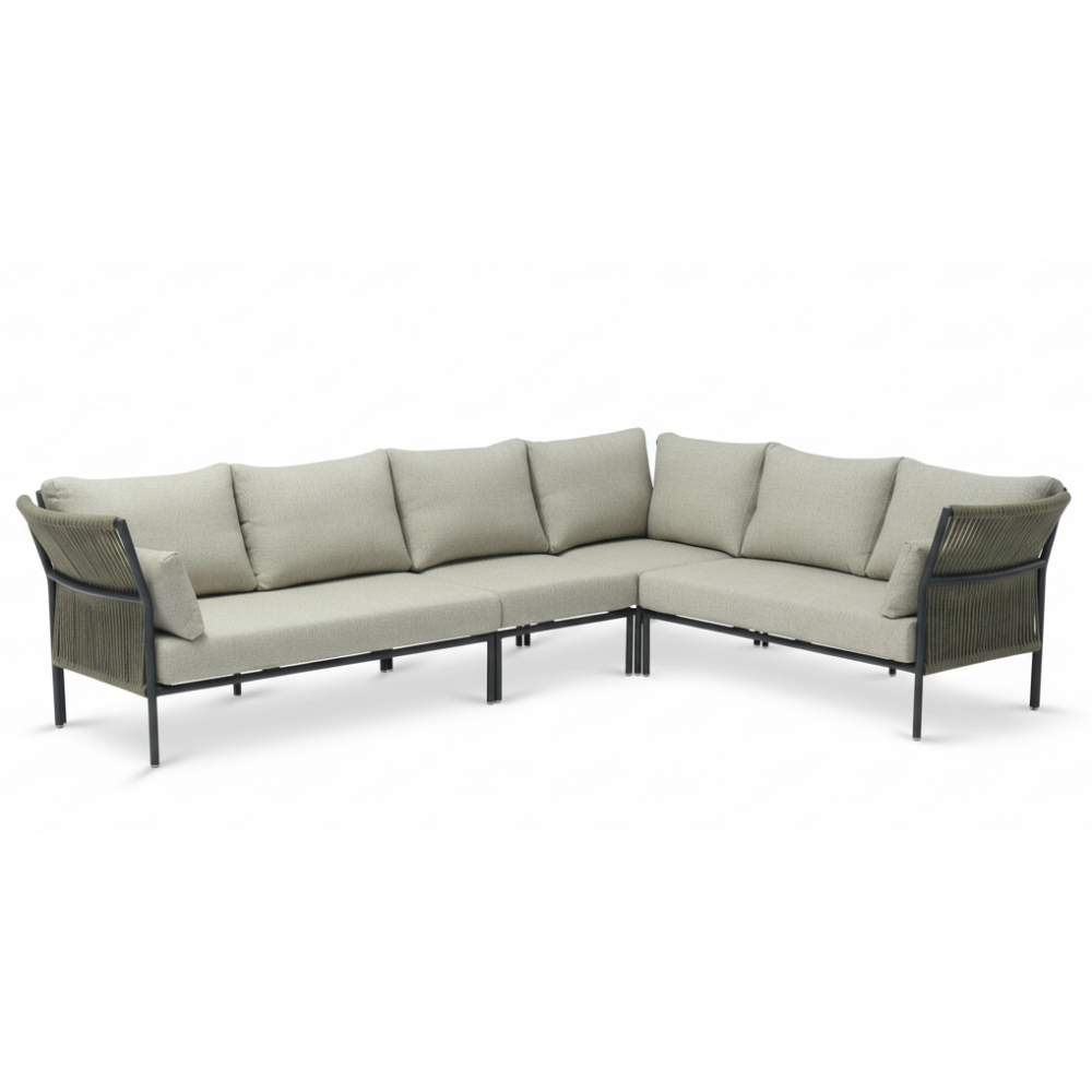 The LAGOM outdoor corner furniture set, presented in light fabric tones and crafted with certified teak wood and a durable aluminum frame, is a refined combination of aesthetics and practicality. The set is made from teak wood, renowned for its exceptional strength and resistance to external factors, including moisture and temperature fluctuations. Teak’s natural durability and elegant appearance make it an ideal material for outdoor furniture. The aluminum frame provides additional strength, stability, and long-lasting performance.