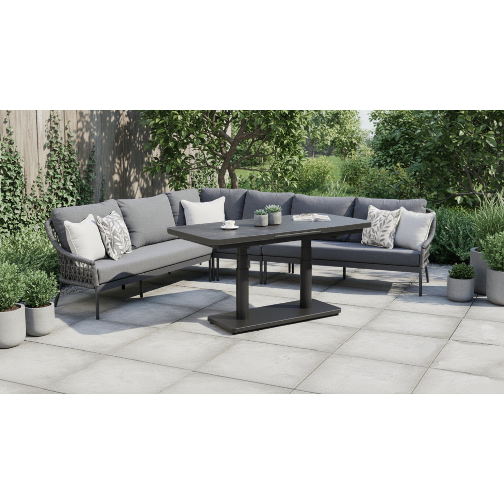 A special advantage of the collection is the possibility to combine sofas with dining tables, making it perfect for multifunctional outdoor spaces.