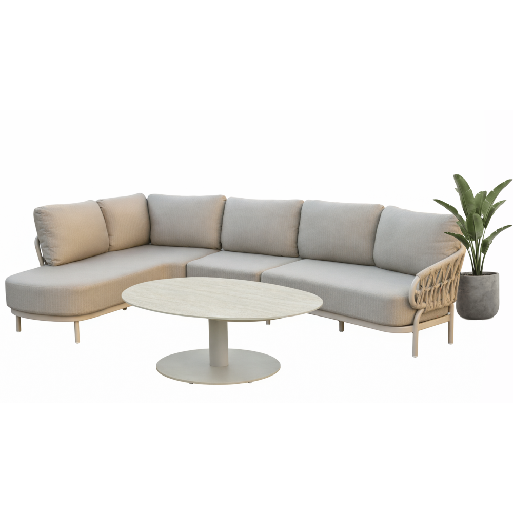 - The set includes: Two-seater sofa with left armrest / Sunlounger with right armrest / armrest cushion