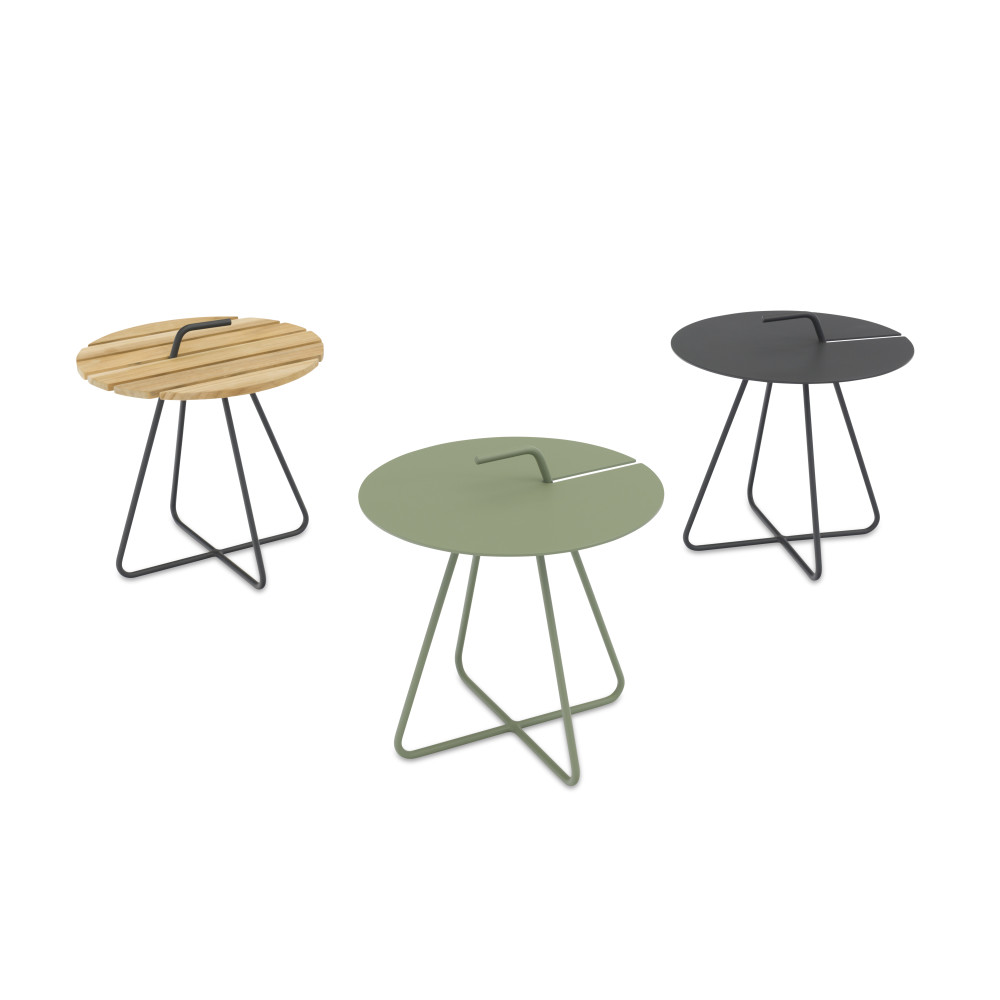 LAGOM HOOK Collection – round corner table (aluminum) Ø44 is an excellent choice for those seeking elegant design and comfort in outdoor spaces. The piece stands out with its minimalist aesthetics and refined form. A key feature is the double-layer woven rope, creating a sense of visual lightness while maintaining a distinctly stylish structure. Slim, curved lines enhance its modern elegance.