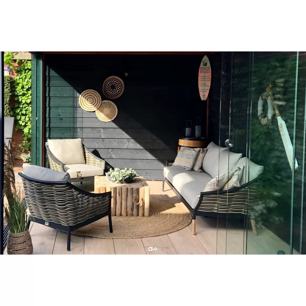 The alluring Apple Bee Milou outdoor furniture collection combines elegant style and functionality, creating a unique atmosphere for your comfort and aesthetics in the open air. Here are the key aspects of this collection that make it special: Bicular wickerwork: Exquisite designer wickerwork gives Milou furniture a refined look and added strength, making it the perfect choice for outdoor spaces. BEE WETT cushions: Soft and comfortable, BEE WETT cushions are highly moisture-resistant and quick-drying, maintaining comfort and attractive appearance even in adverse weather conditions. QDF quick dry foam technology: Thanks to the unique formula of QDF quick-drying foam, Milou furniture stays dry and ready to use even after rain or contact with moisture.