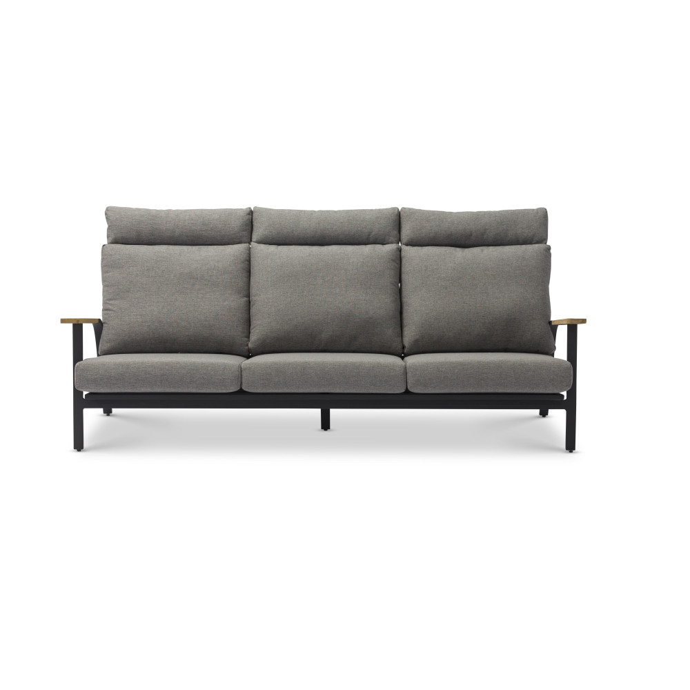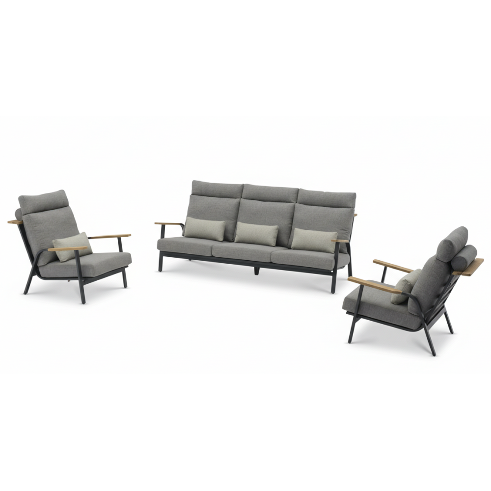 The stainless steel frame with an anthracite powder coating features beautiful teak wood details on the armrests. All of this is designed to withstand various weather conditions. Special attention should be paid to the cushion, as it is a key element of comfort. Furniture cushions are often made of special materials resistant to weather conditions, such as moisture and ultraviolet radiation, which ensures their long service life.
