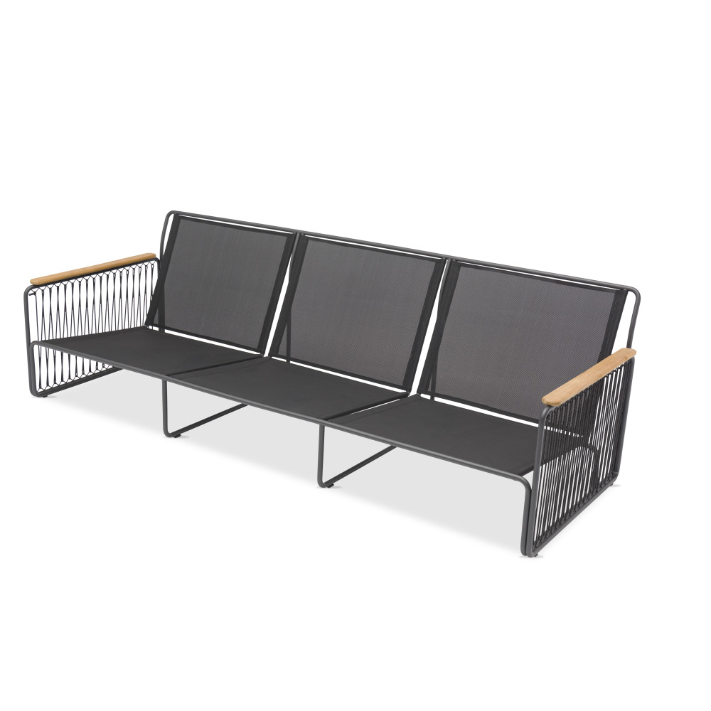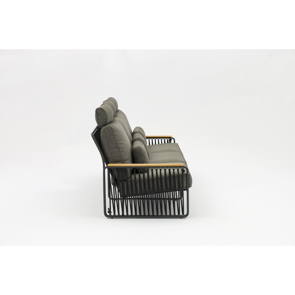 Details: Armrests made of natural teak wood add elegance and warmth, highlighting the natural character of the collection.