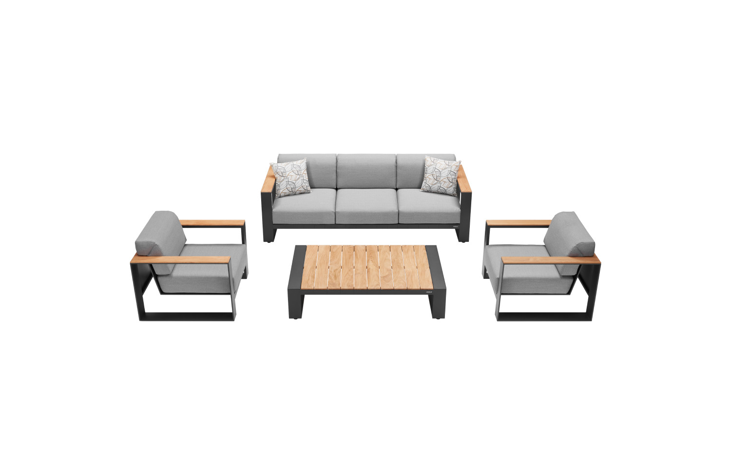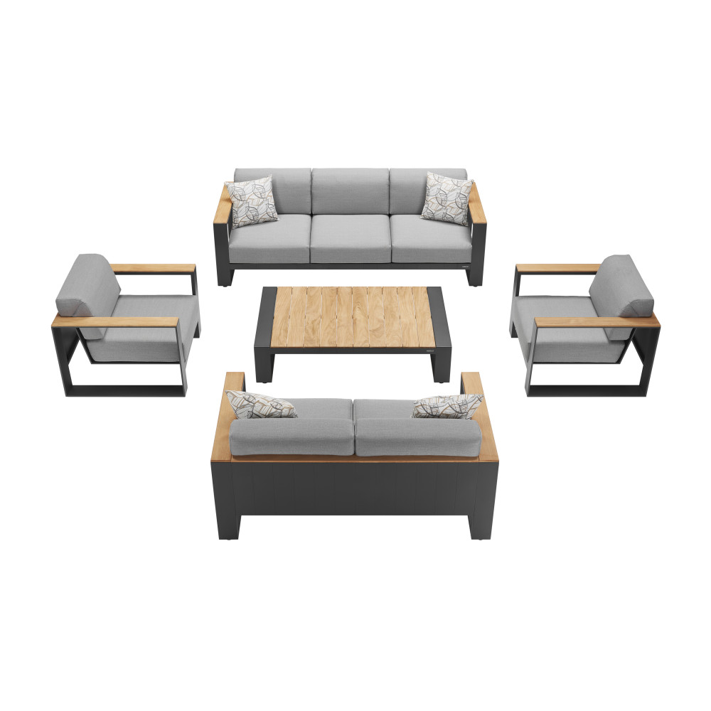 - Materials: Myanmar teak wood is used for the tabletops and armrests, emphasizing natural beauty and adding warm textural accents.