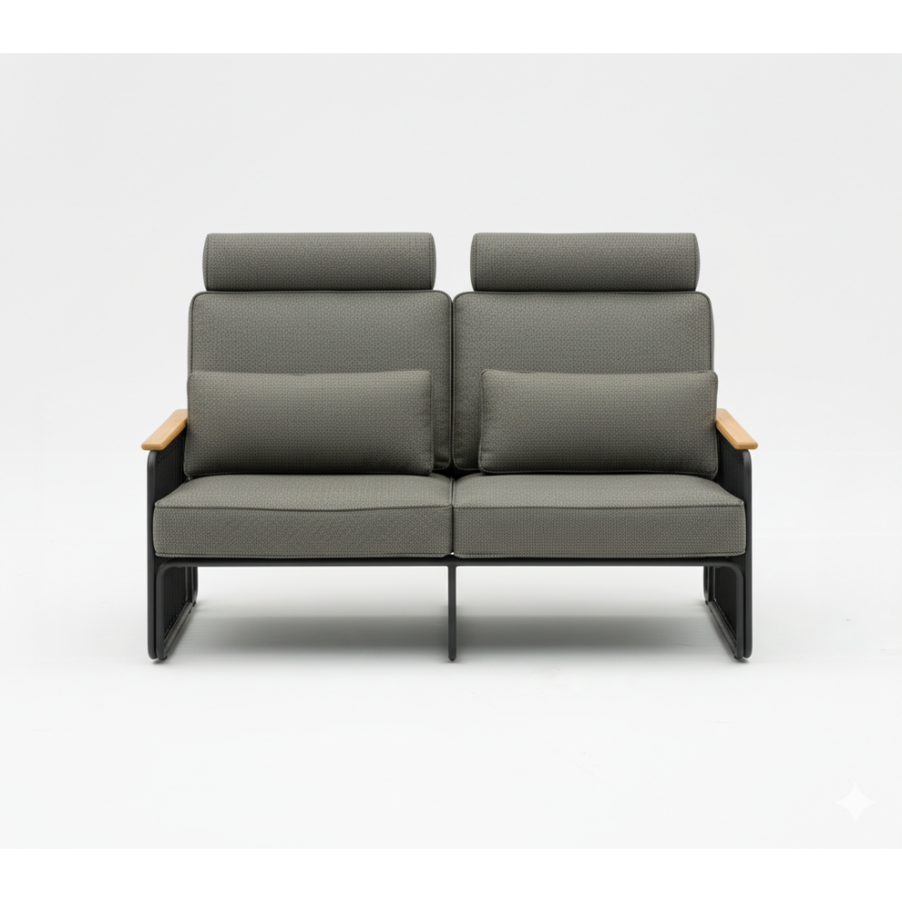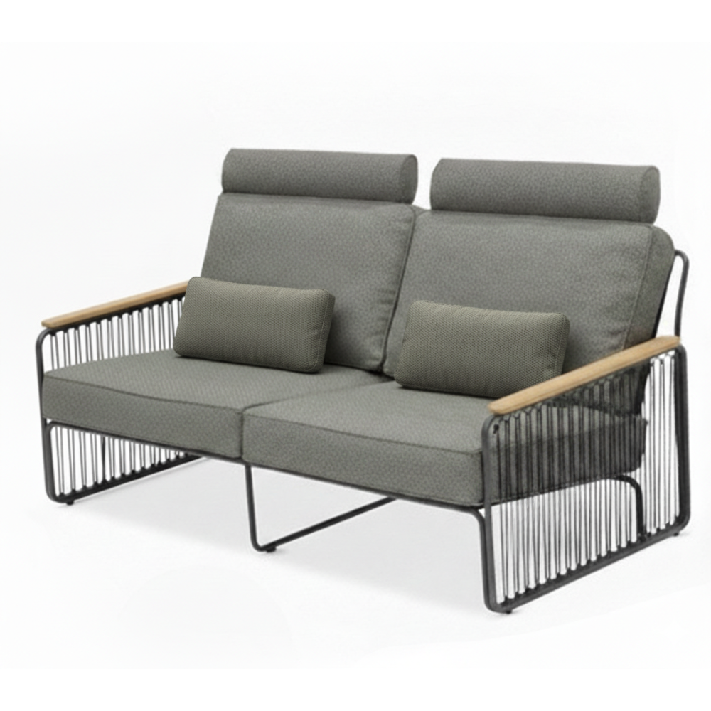 Details: Armrests made of natural teak wood add elegance and warmth, highlighting the natural character of the collection.