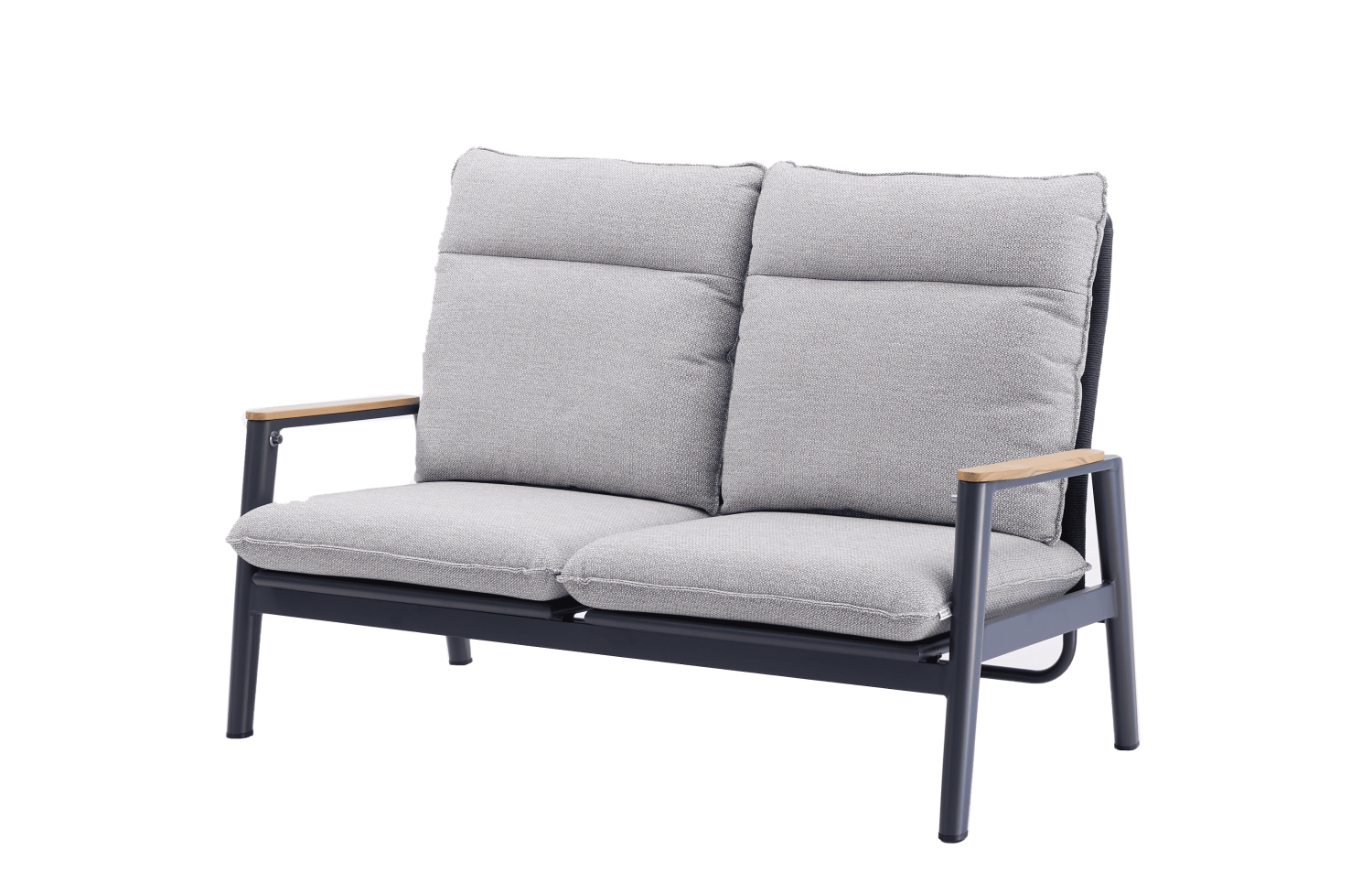 Details: armrests made of natural teak wood add elegance and warmth.