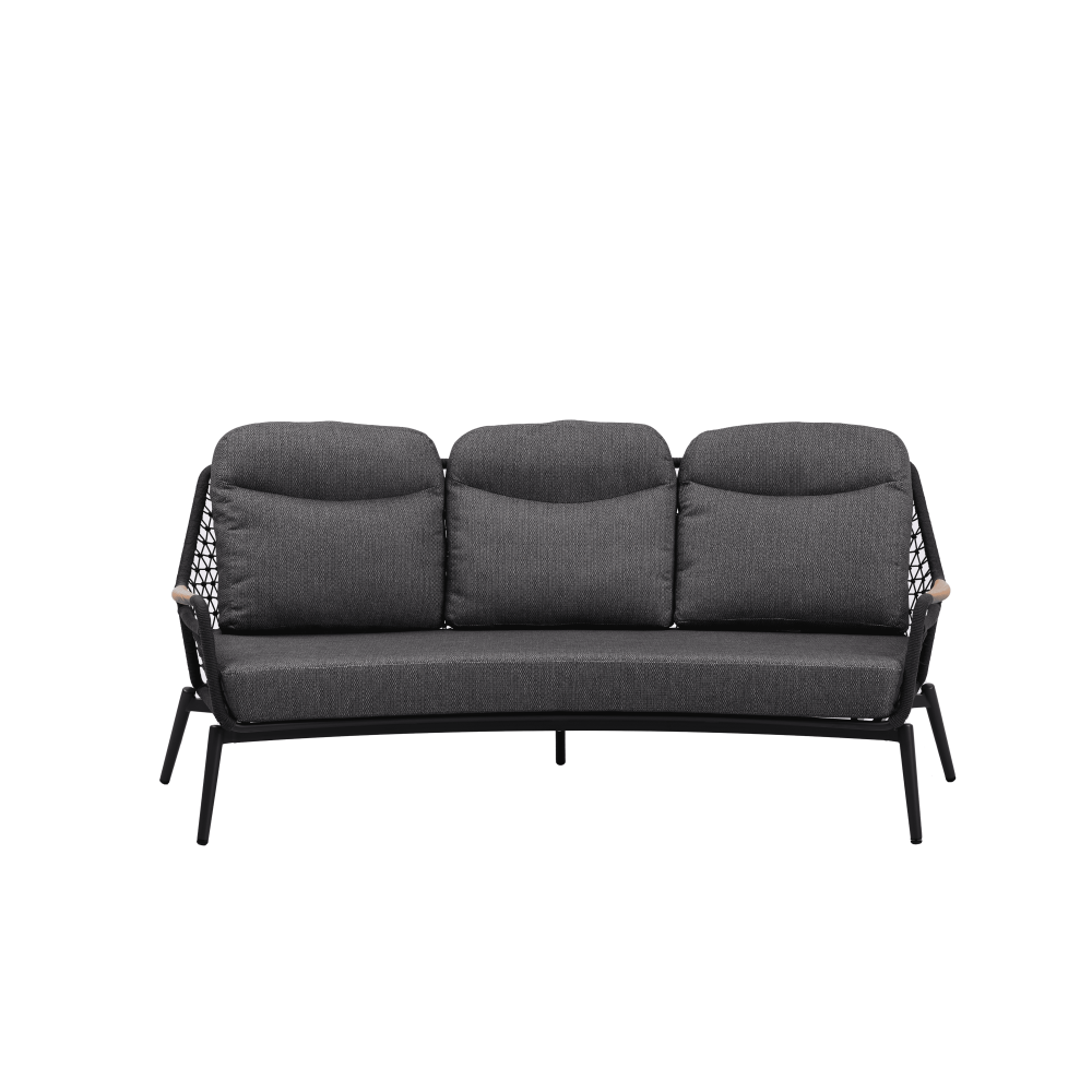 Cushion covers are made of olefin fabric with an inner waterproof coatingFrame made of stainless steel with powder coating in beige with teak wood detailsPerfect for outdoor use, thanks to weather-resistant materials.