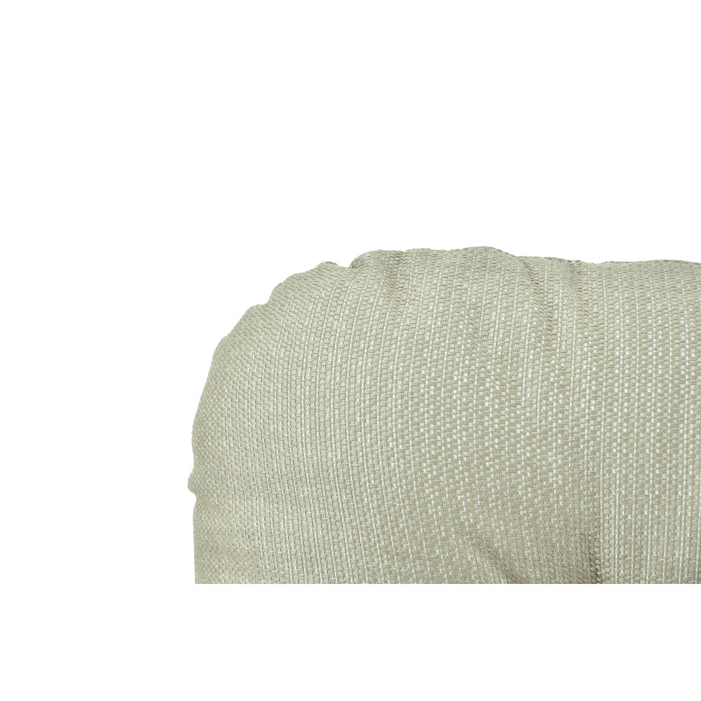 Sunproof® upholstery fabric guarantees resistance to fading and moisture, while natural teak wood details introduce warmth and coziness, balancing the coolness of metal.