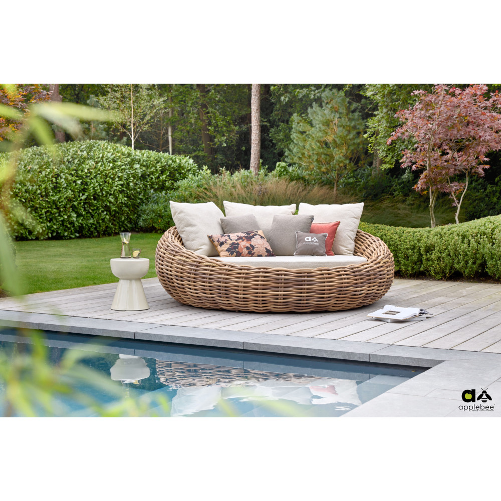 Back after a long absence! It's no surprise that Cocoon has been reintroduced into the Apple Bee collection, this time in a very contemporary form. Beautiful green cushions for relaxation with Bee Wett® technology and thick Biculair® woven thread up to 20 mm thick. Your own safe place in the garden or on the terrace.