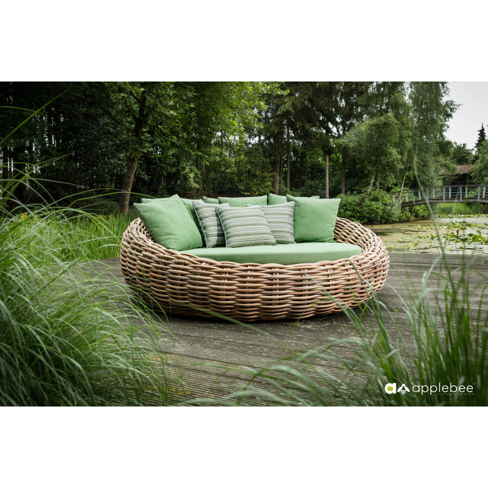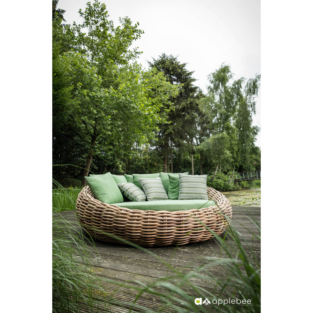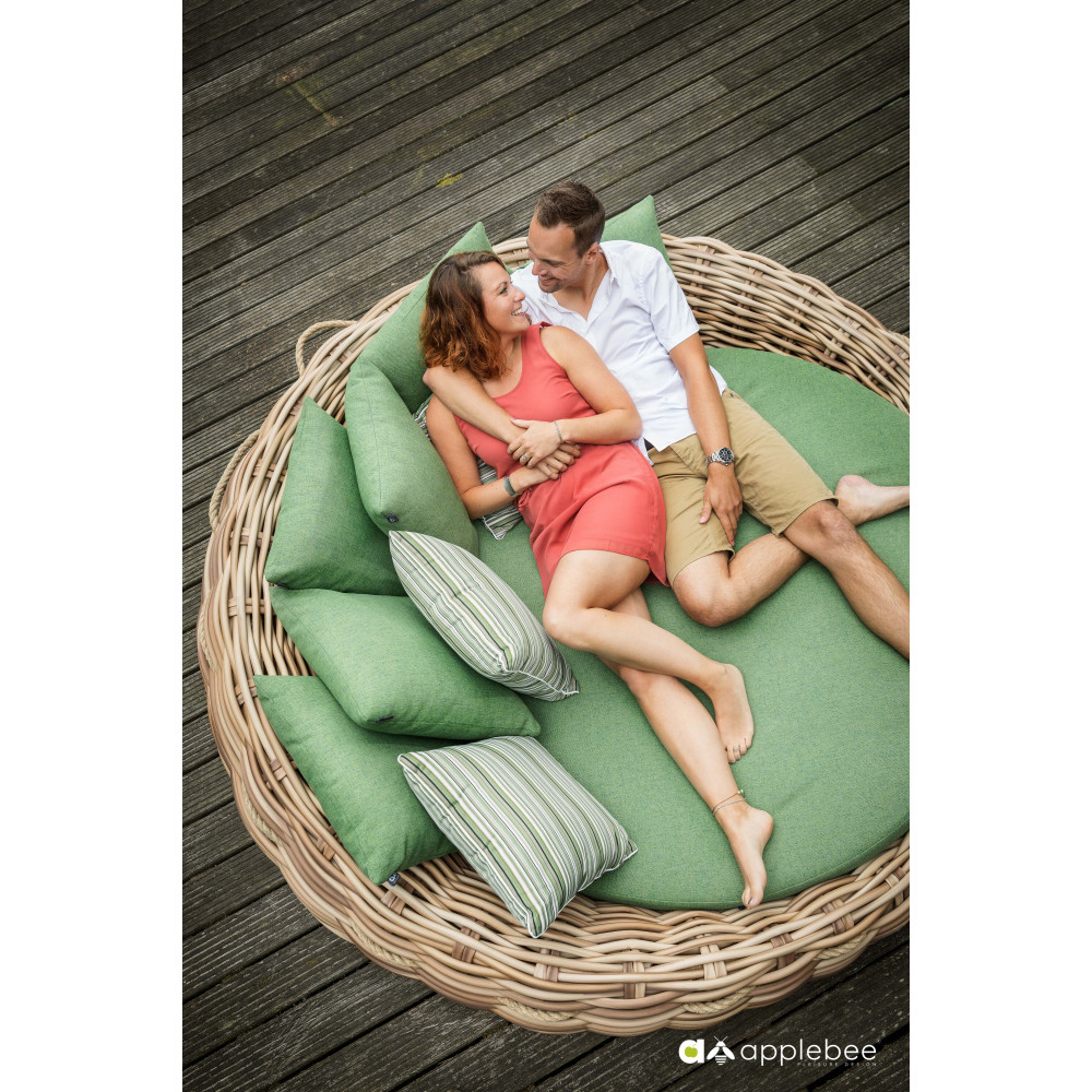 A return after a long absence! It is no surprise that Cocoon has been reintroduced into the Apple Bee collection, this time in a very contemporary look. Beautiful green lounge cushions featuring Bee Wett® technology with thick woven Biculair® yarn up to 20 mm. Your own safe haven in the garden or on the terrace.