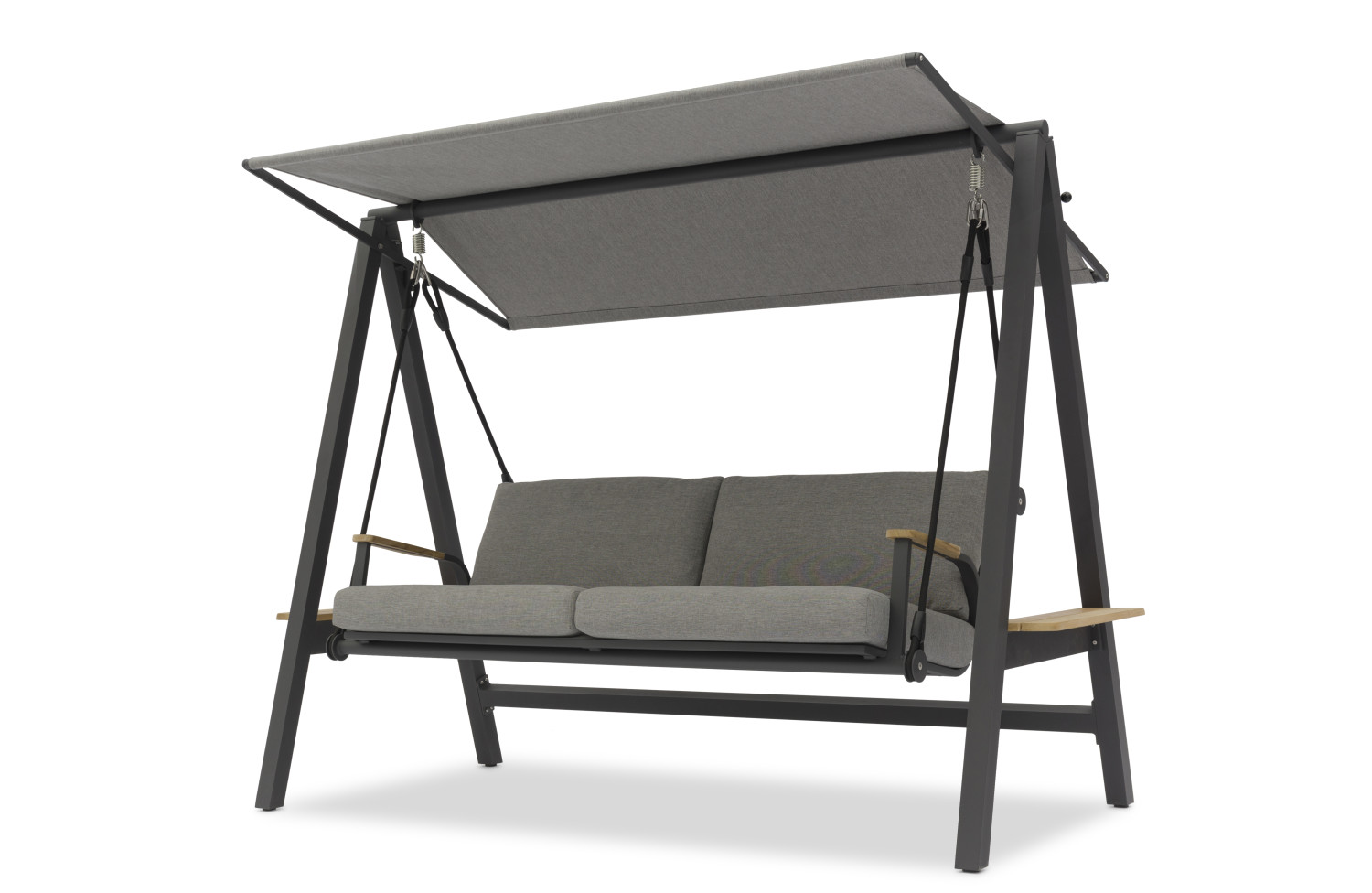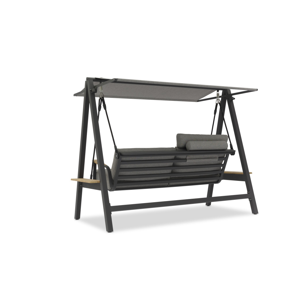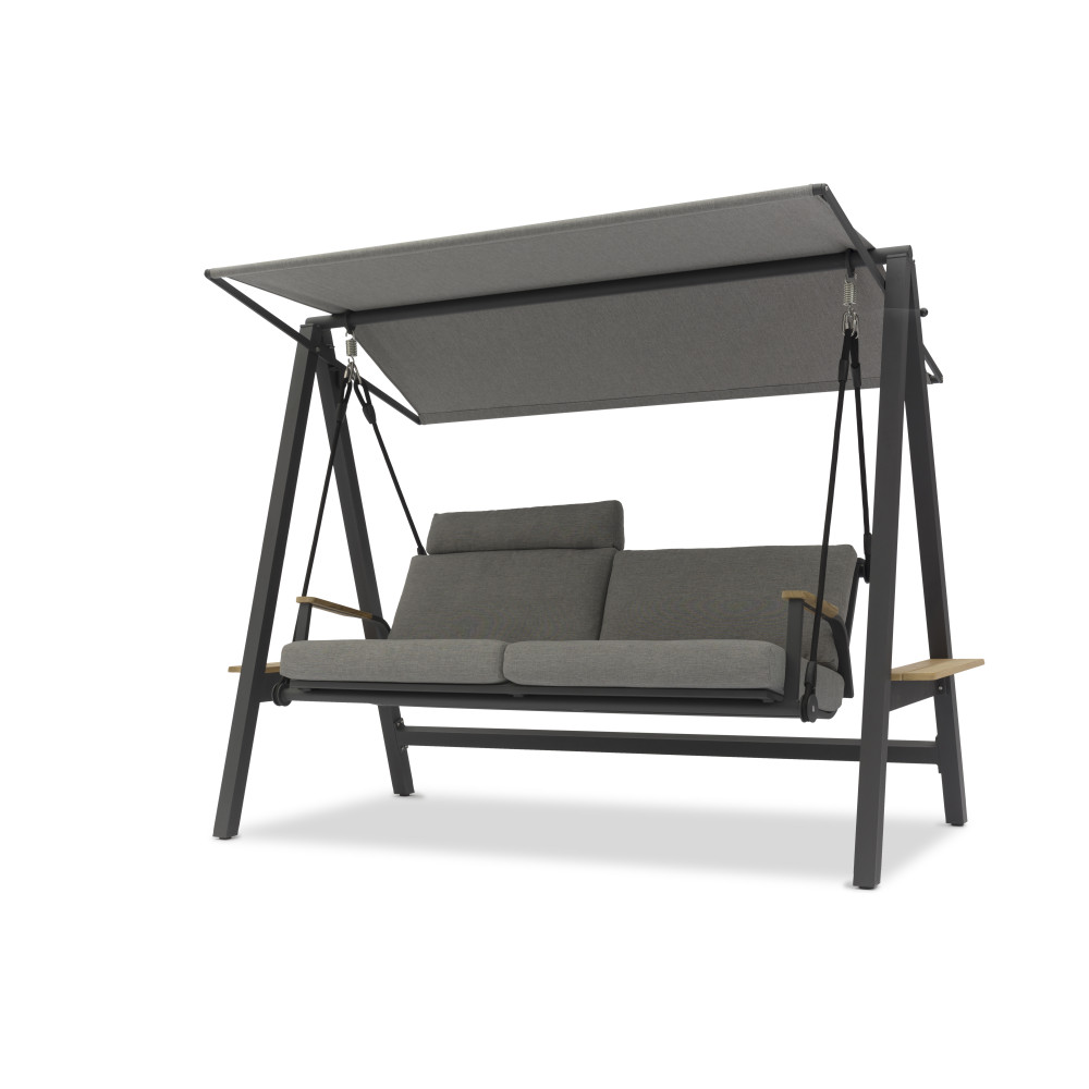 Modern garden swings in a classic style, combining aluminum and teak wood. The LAGOM swing, allowing you to experience a sense of lightness and weightlessness. Thanks to their compact design, they easily fit on a summer terrace, possibly by a swimming pool or on a beach overlooking the sea. The waterproof fabric used in this collection is easy to maintain. Special attention should be paid to the cushion, as it is a key element of comfort.