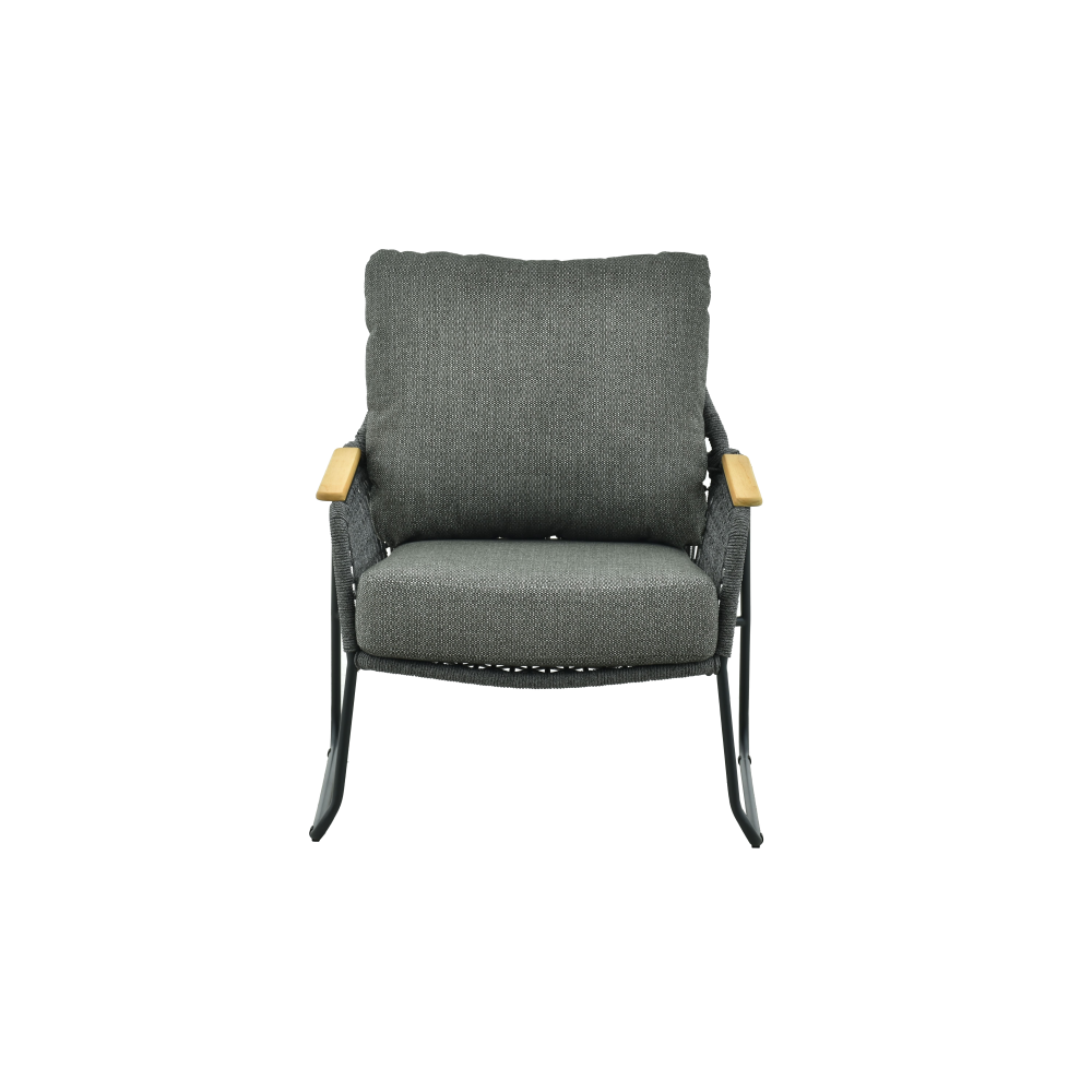 Detale: podłokietniki z naturalnego drewna tekowego dodają elegancji i ciepła, podkreślając naturalny styl kolekcji.