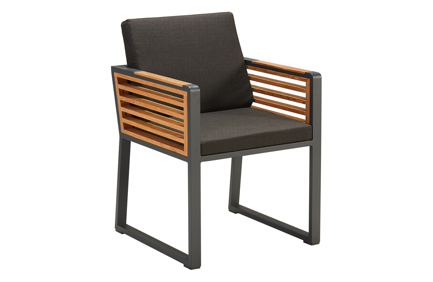 Certyfikowany tek, użyty w tej kolekcji, gwarantuje wytrzymałość, solidność i naturalne piękno mebli. Posiada właściwości, które czynią go idealnym materiałem do warunków zewnętrznych.