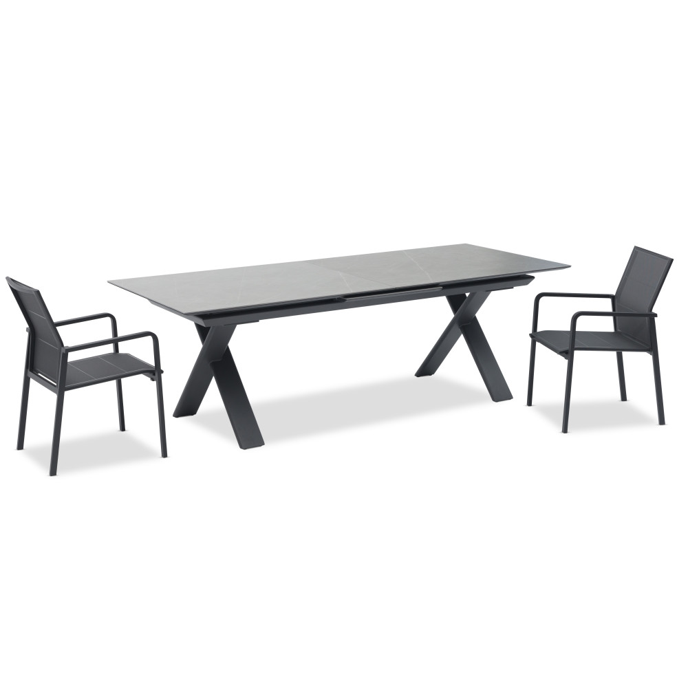 Kolekcja stołów Albatros łączy nowoczesny design i funkcjonalność dzięki mechanizmowi rozsuwanemu oraz solidnym materiałom. Podstawę stanowi aluminiowa rama z powłoką proszkową Tiger®, a blat wykonany jest z ceramiki 6 mm, co gwarantuje trwałość i odporność na warunki atmosferyczne.