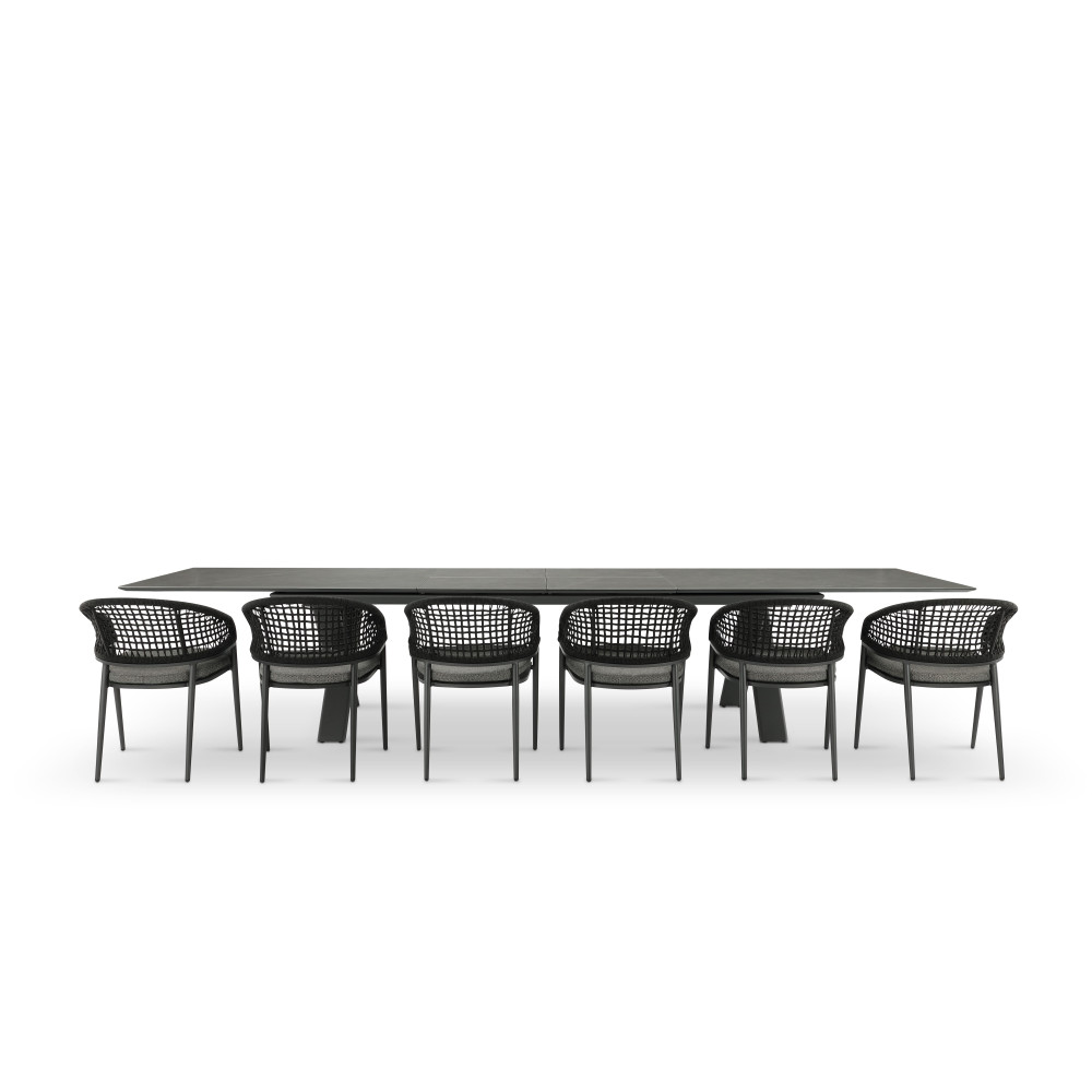 Kolekcja stołów Albatros łączy nowoczesny design i funkcjonalność dzięki mechanizmowi rozsuwanemu oraz solidnym materiałom. Podstawę stanowi aluminiowa rama z powłoką proszkową Tiger®, a blat wykonany jest z ceramiki 6 mm, co gwarantuje trwałość i odporność na warunki atmosferyczne.