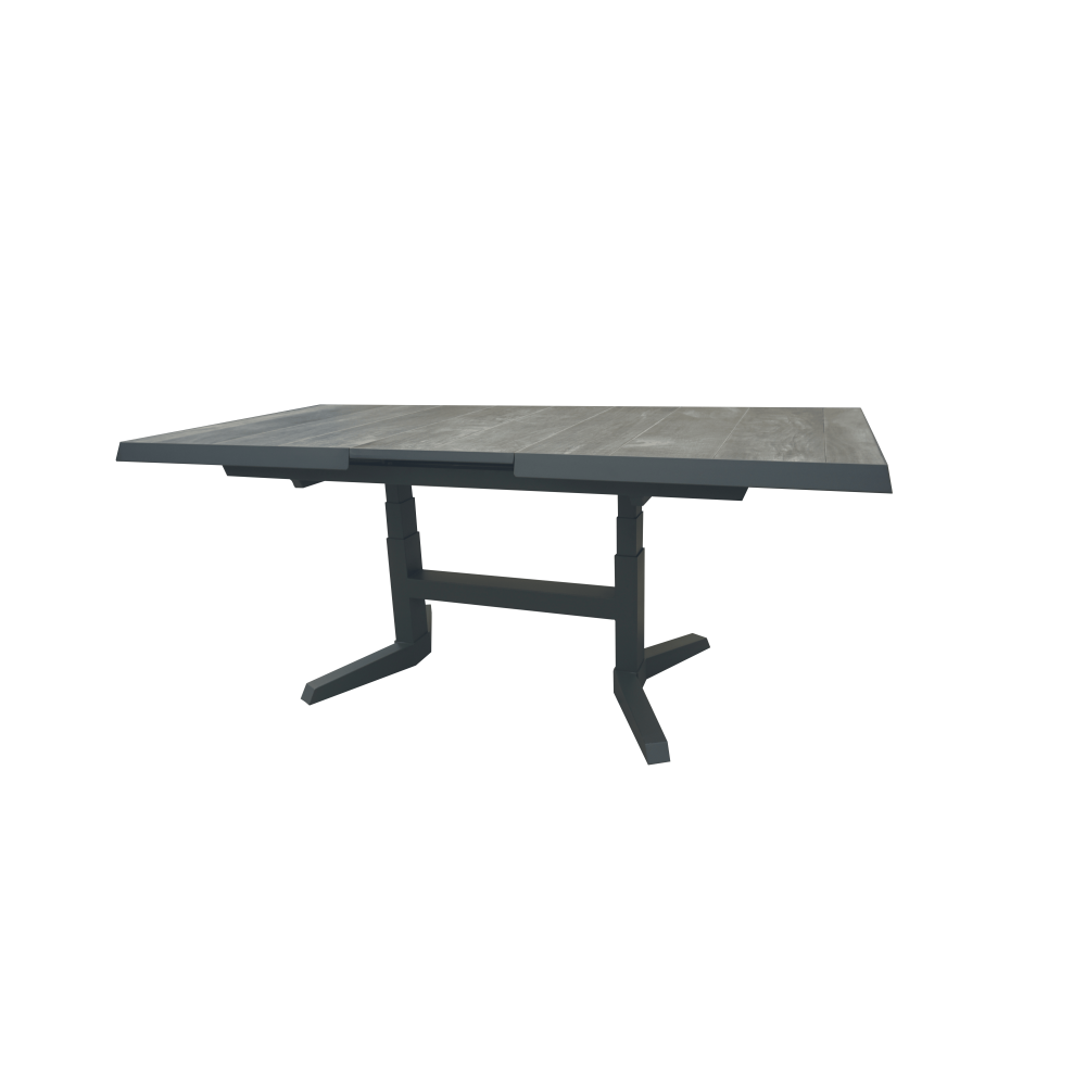 Stół SKANDI wykonany jest z spawanego aluminiowego stelaża oraz wysokiej klasy ceramiki przeznaczonej do użytku zewnętrznego. Dzięki nowoczesnym mechanizmom regulacji, zachwyca swoją funkcjonalnością i możliwościami aranżacyjnymi.