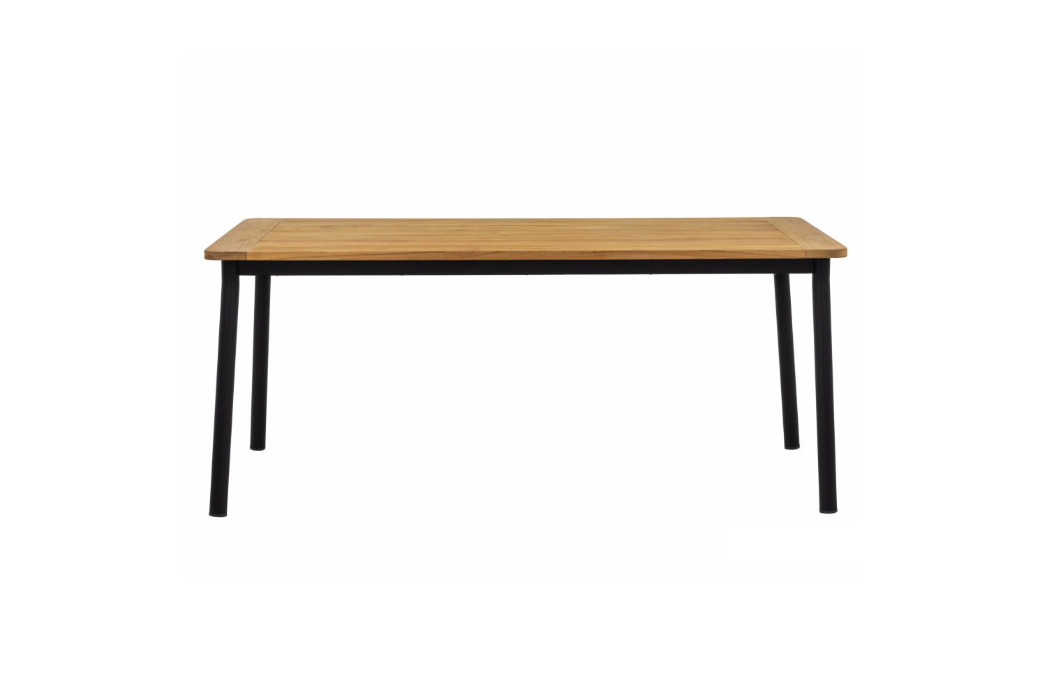 Oprócz Elle Belt Lounge, wprowadziliśmy również tę kolekcję jako opcję do jadalni. Połączenie trzech różnych materiałów nadaje temu zestawowi piękny i elegancki wygląd. Na przykład blat stołu jadalnego i podłokietniki krzeseł jadalnych są wykonane z drewna tekowego, które w tym zestawie ma bardzo ładny czarny kolor. Rama stołu i krzeseł wykonana jest z czarnego matowego aluminium. Na zakończenie kolekcji Elle do oparcia dodano pleciony czarny dzwonek, który również nadał nazwę Elle „Belt”. Nazywamy to plecionką „Pas i sznur”.