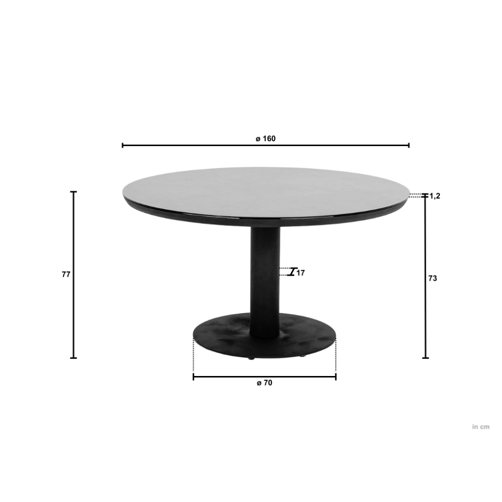 Dzięki średnicy 140 cm i wysokości 77 cm stół oferuje wystarczająco dużo miejsca na przytulną kolację z rodziną lub przyjaciółmi.