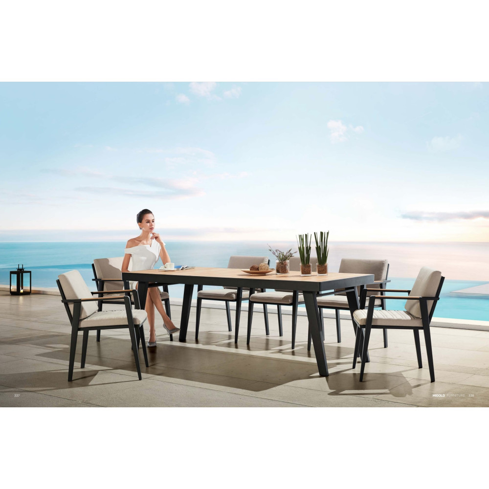 Zestaw mebli ogrodowych Higold Emoti nie tylko upiększy Twoją przestrzeń, ale również stanie się inwestycją w komfort, styl i trwałość, które sprawią, że wypoczynek na świeżym powietrzu będzie jeszcze bardziej przyjemny i niezapomniany. Wodoodporna tkanina olefin zastosowana w tej kolekcji nie sprawia trudności w pielęgnacji.