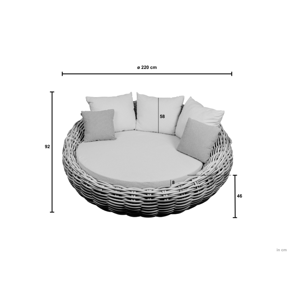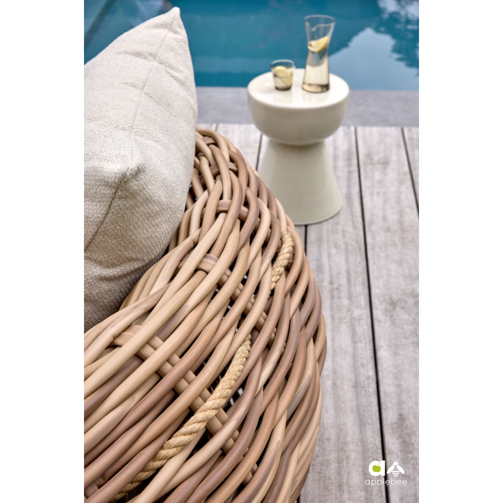 - Plecionka z rattanu (Bicular wickerwork): Efektowna designerska plecionka z rattanu nadaje meblom Cocoon elegancki wygląd i dodatkową wytrzymałość, co czyni je idealnym rozwiązaniem do użytku na świeżym powietrzu.