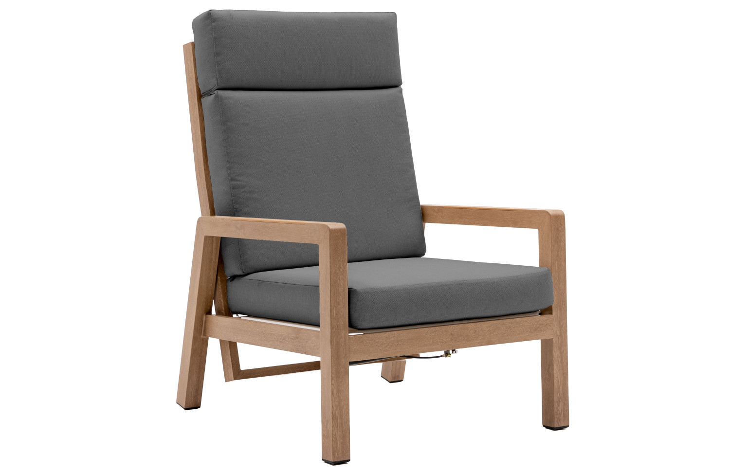 - Materiał aluminium; blat- polywood: imitacja drewna / szybkoschnące wypełnienie poduszki, tkanina: olefina