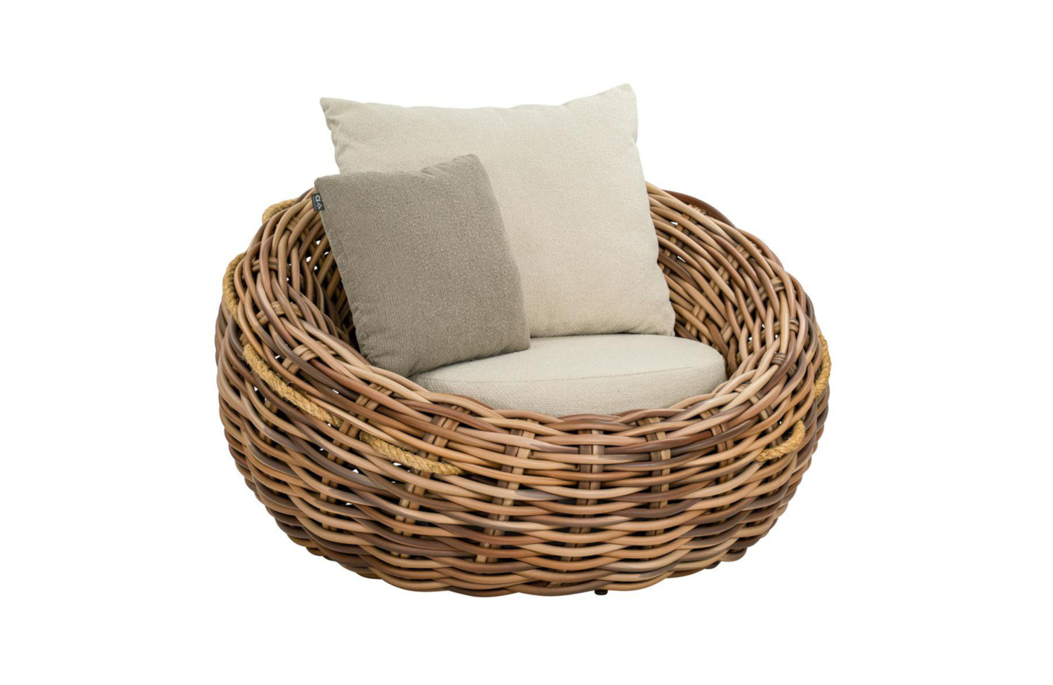 - Plecionka z rattanu (Bicular wickerwork): Efektowna designerska plecionka z rattanu nadaje meblom Cocoon elegancki wygląd i dodatkową wytrzymałość, co czyni je idealnym rozwiązaniem do użytku na świeżym powietrzu.