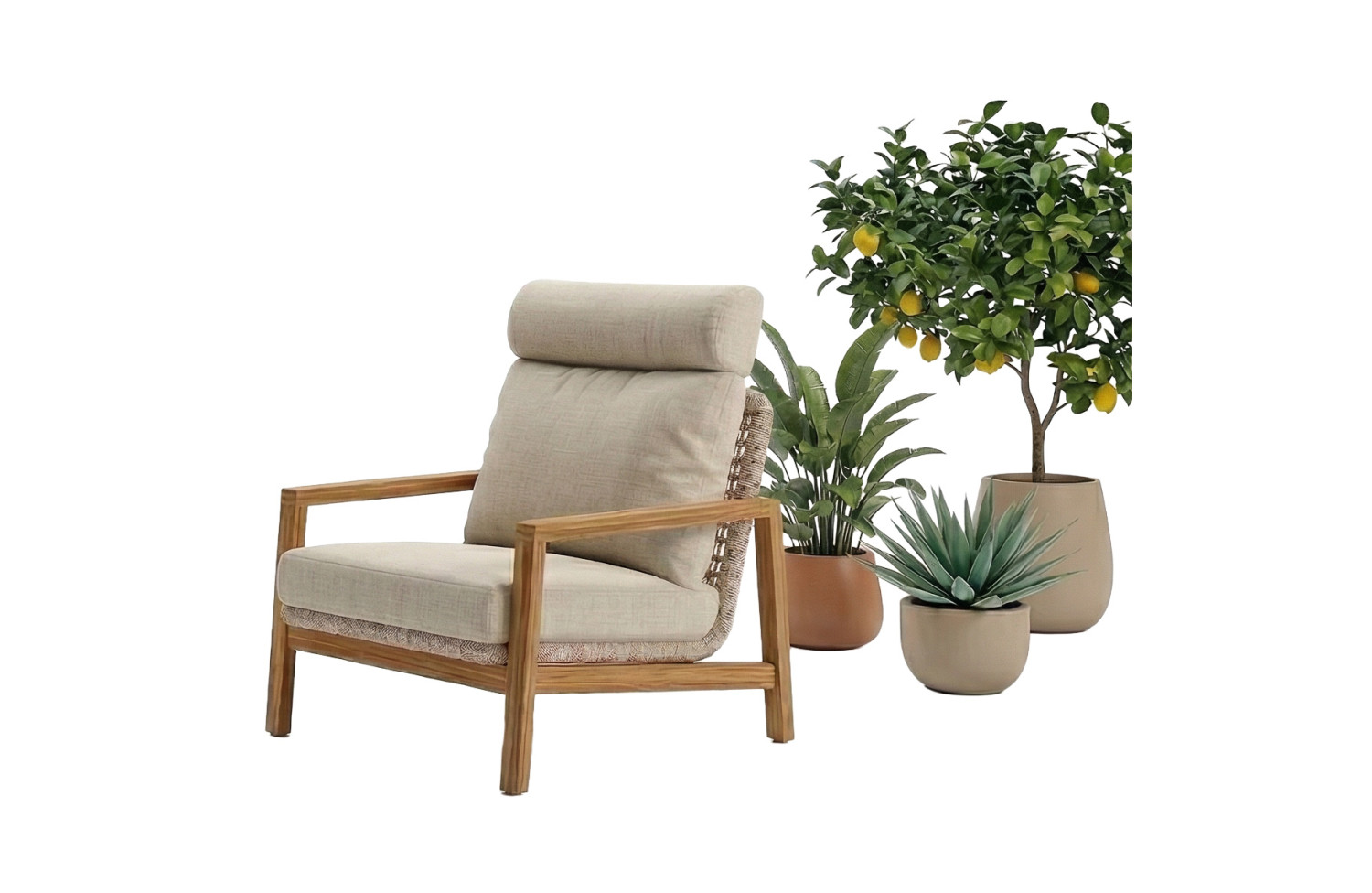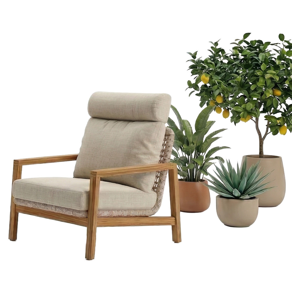 Fotel (z poduszkami) - posiada głębokie siedzisko, teakową powierzchnię podłokietników, aluminiowa konstrukcja w połączeniu z miękkimi poduszkami sprawiają, że ta seria jest bardzo komfortowa, trwała i wyjątkowo stylowa. Kolekcja obejmuje zestaw sofowy oraz modułowy zestaw narożny. Można dobrać idealny zestaw do Twojego tarasu. "Sun Art" - to najnowocześniejszy wybór dla Twojej przestrzeni zewnętrznej.
