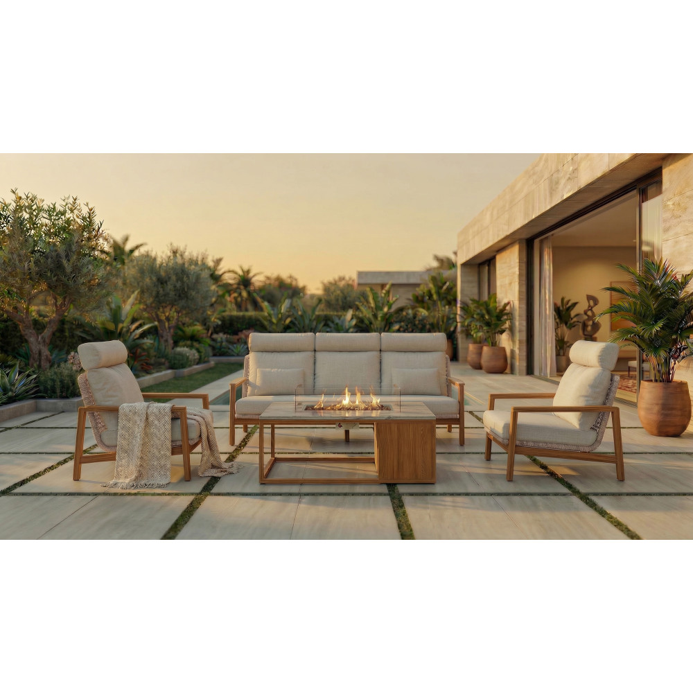 Aluminiowa konstrukcja oraz 100% Olefin gwarantują długą żywotność tych mebli nawet przy intensywnym użytkowaniu na zewnątrz. Kolor podkreśla nowoczesny styl i łatwo dopasowuje się do każdego projektu przestrzeni zewnętrznej. Zestawy lounge z możliwością łączenia sof ze stołem jadalnianym sprawiają, że kolekcja ta jest niezastąpiona podczas rodzinnych obiadów, wieczornych spotkań czy przyjęć pod gołym niebem.