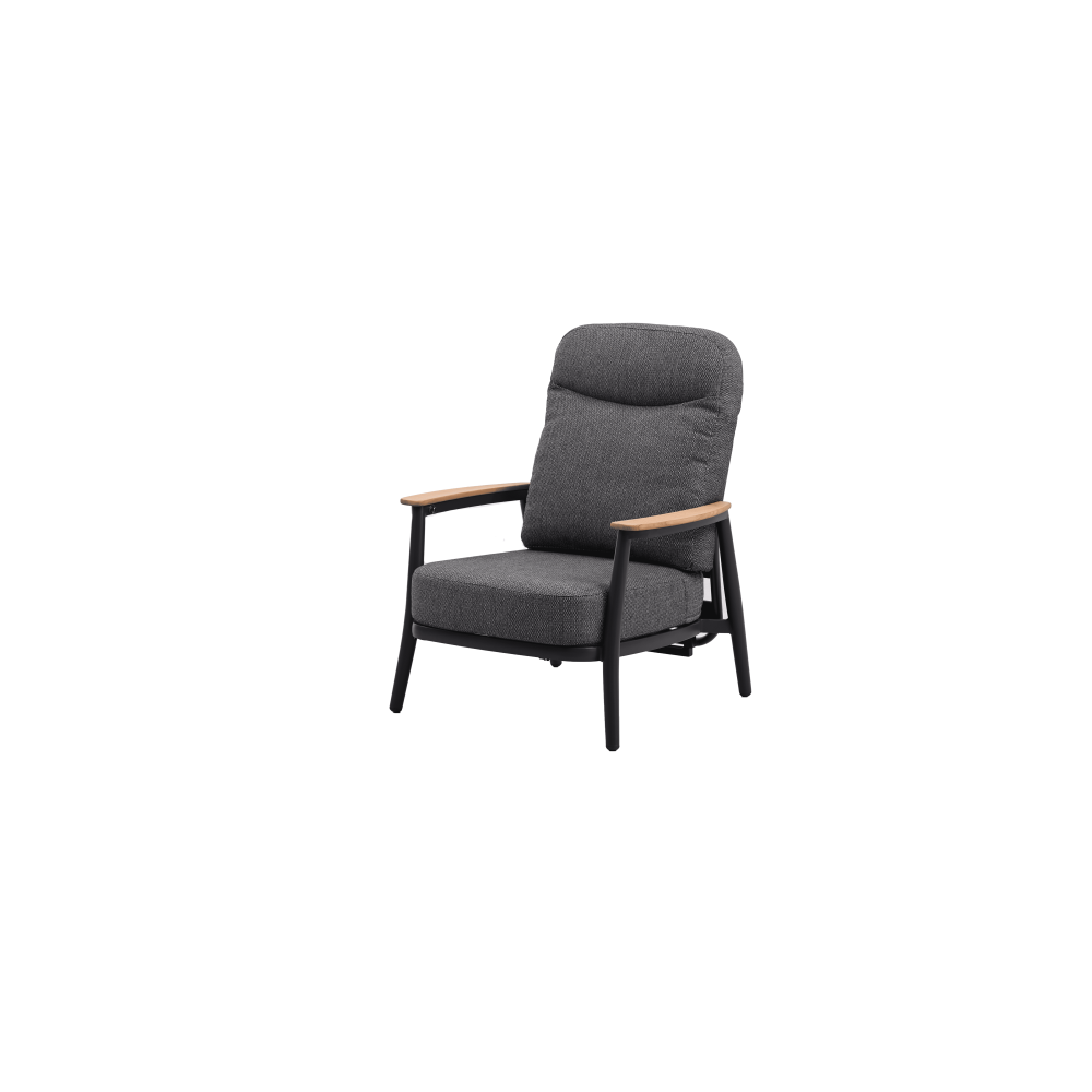 Rama ze stali nierdzewnej z powłoką proszkową w kolorze beżowym z pięknymi detalami z drewna tekowego na podłokietnikach. Zestaw idealnie nadaje się do użytku na świeżym powietrzu, ponieważ jest wykonany z materiałów odpornych na różne warunki klimatyczne.