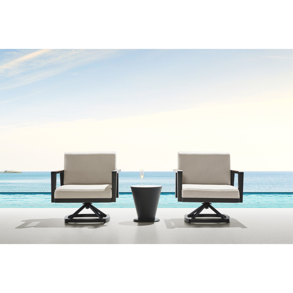 Połączenie drewna tekowego i aluminium w najlepszym wydaniu prezentuje obrotowy fotel Emoti. Atrakcyjny design oraz doskonały komfort siedzenia sprawiają, że jest to idealny wybór do strefy relaksu.
